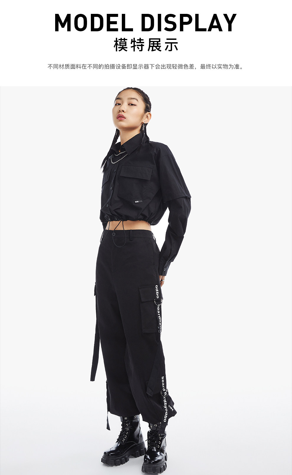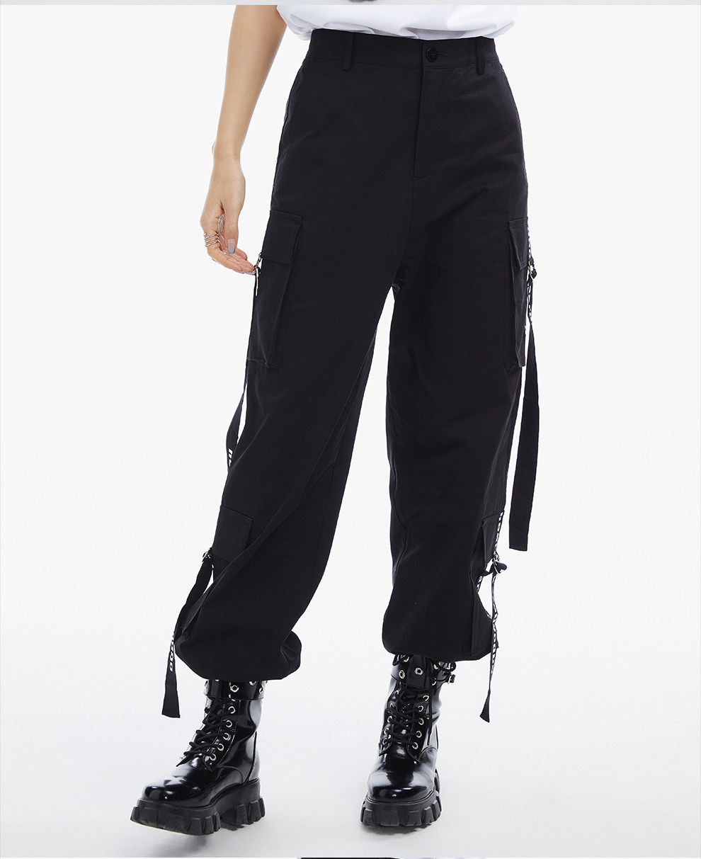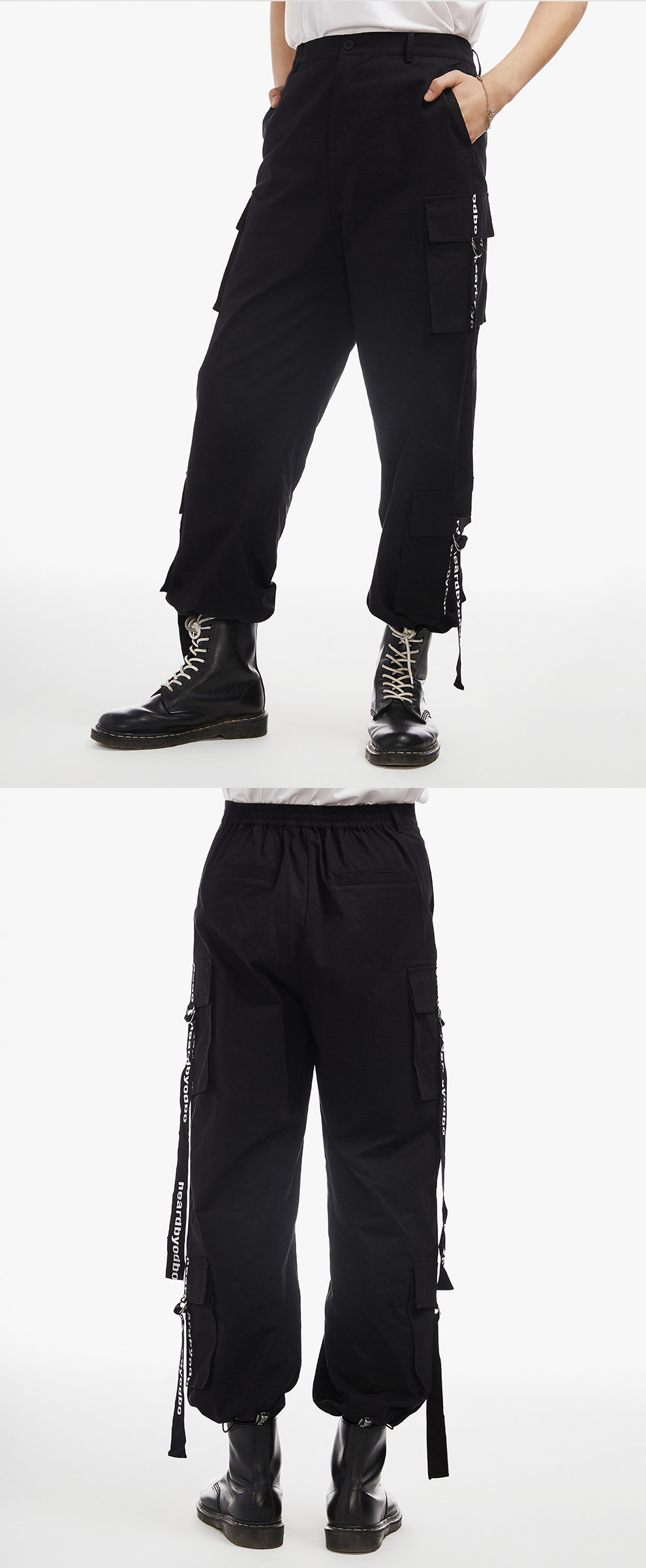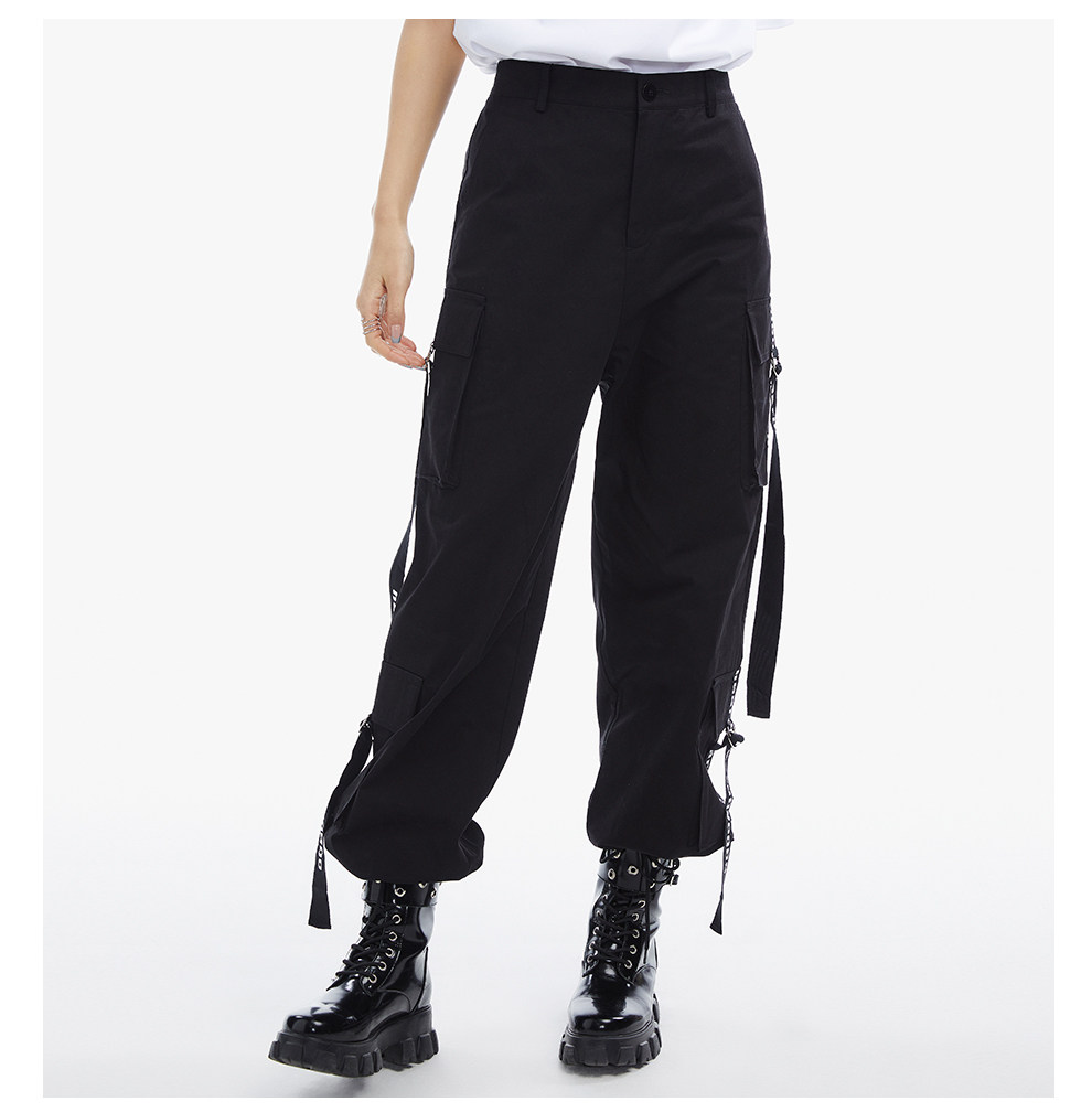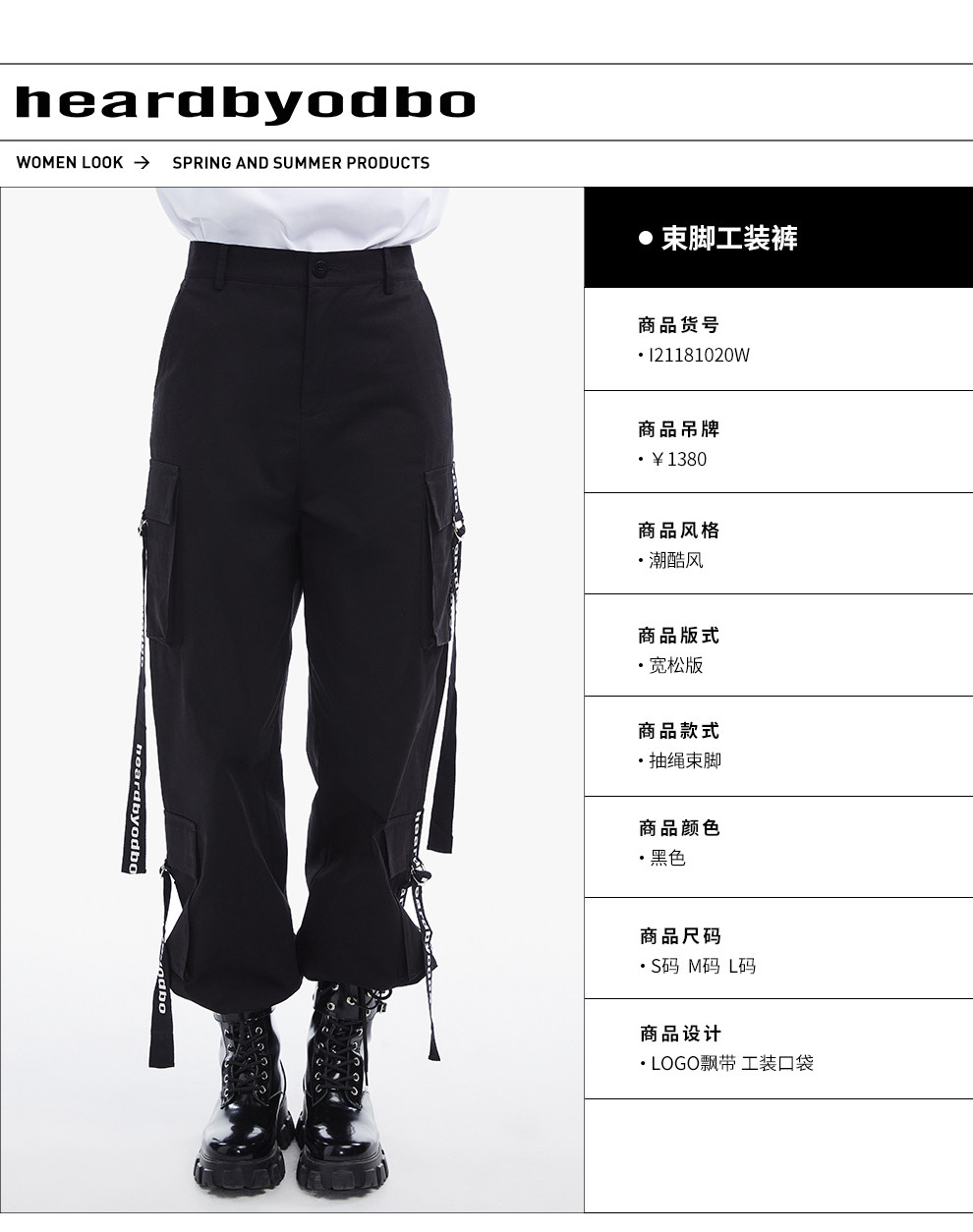 Heardbyodbo潮牌高街織帶束腳工裝褲夏季女裝2022年新款休閒褲