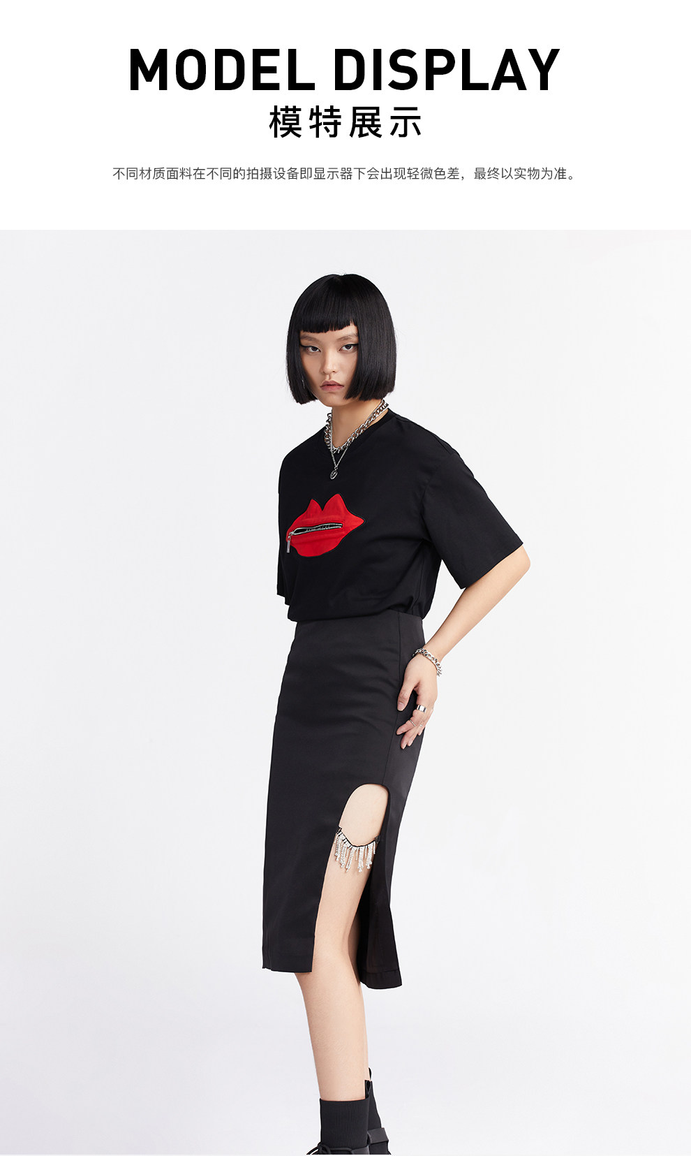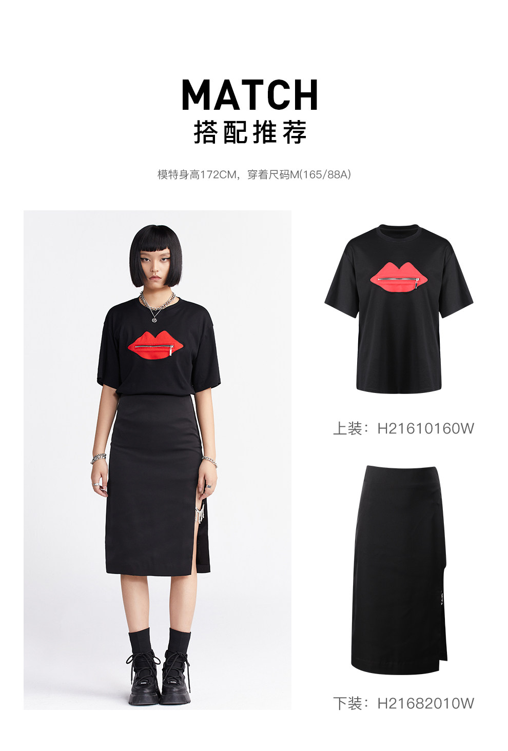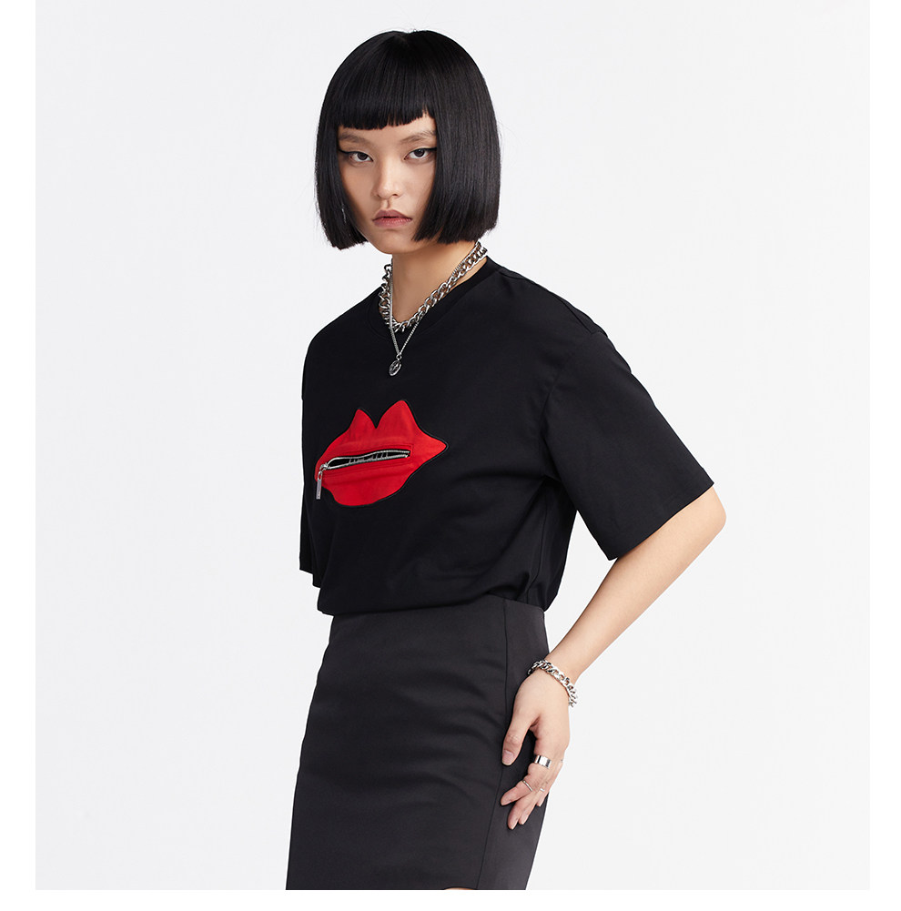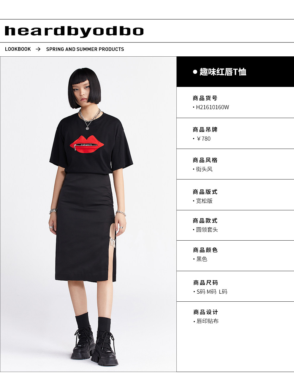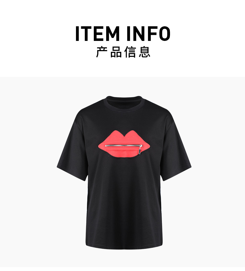 Heardbyodbo甜酷上衣小眾設計感t恤女短袖紅唇拉鍊2022新款夏