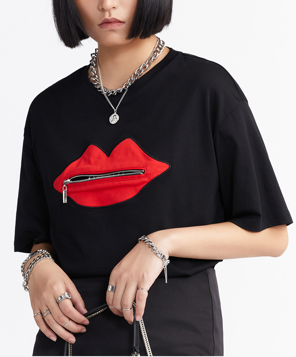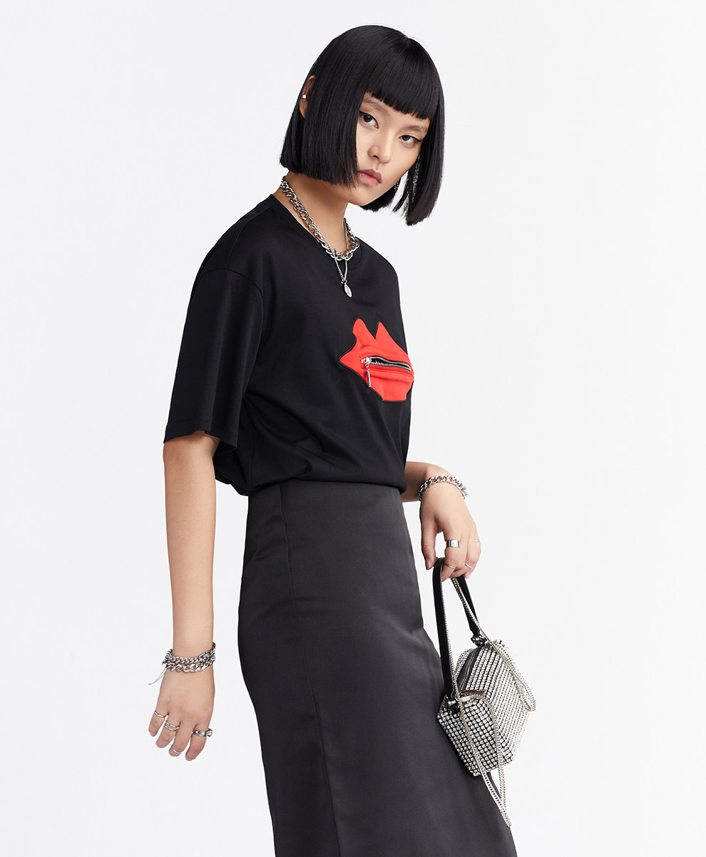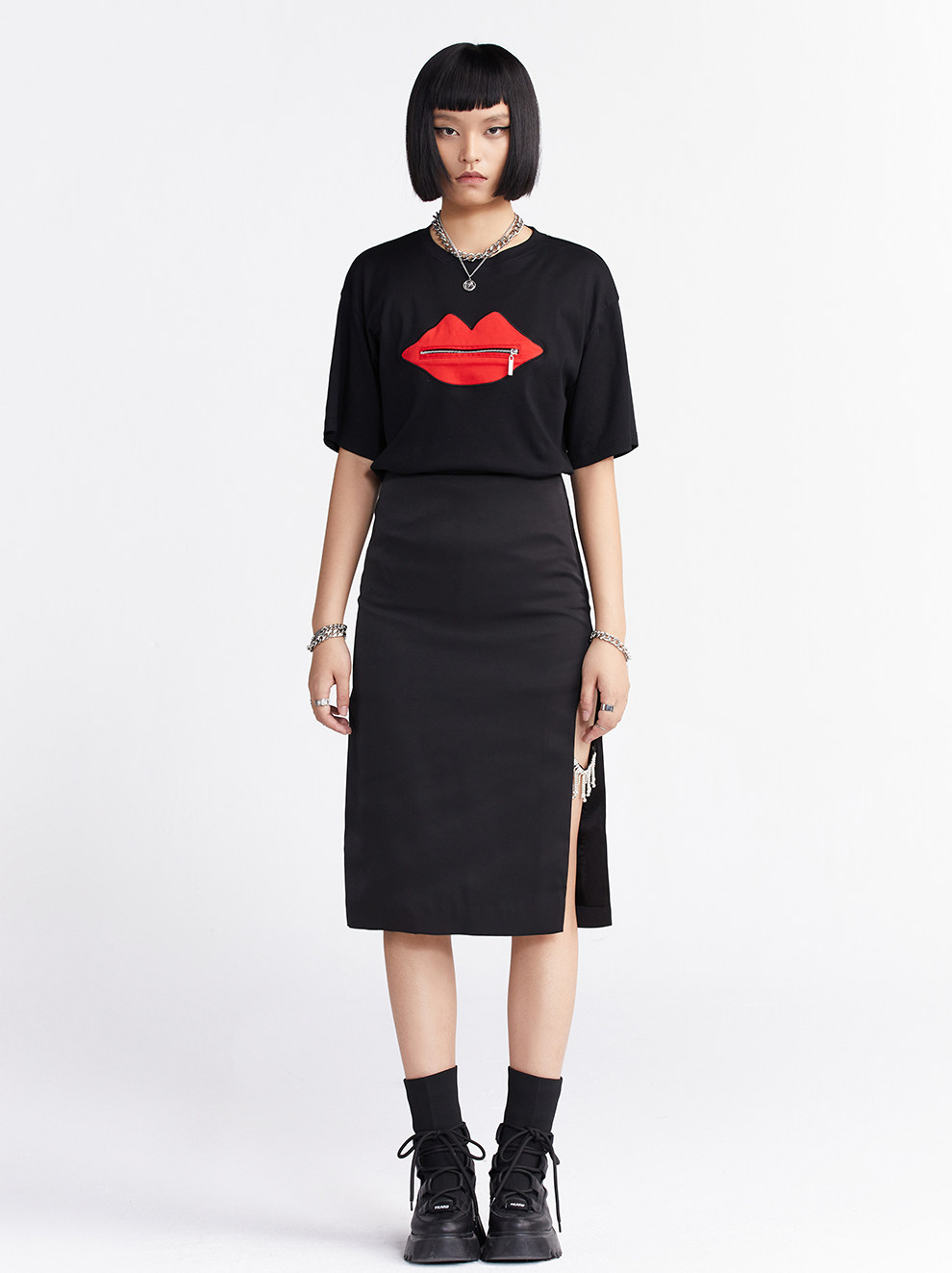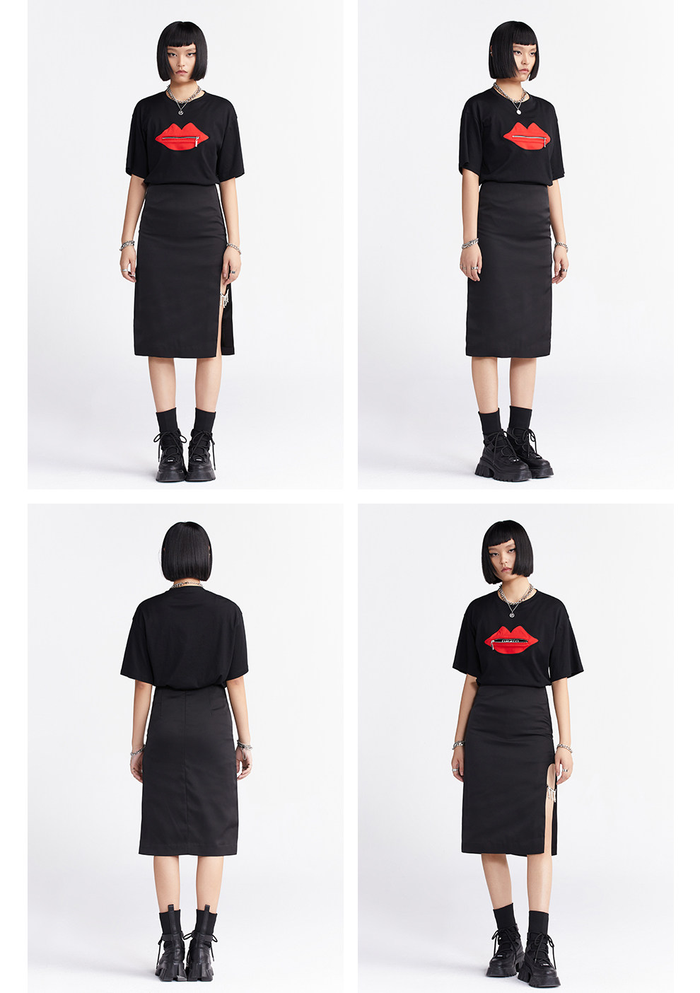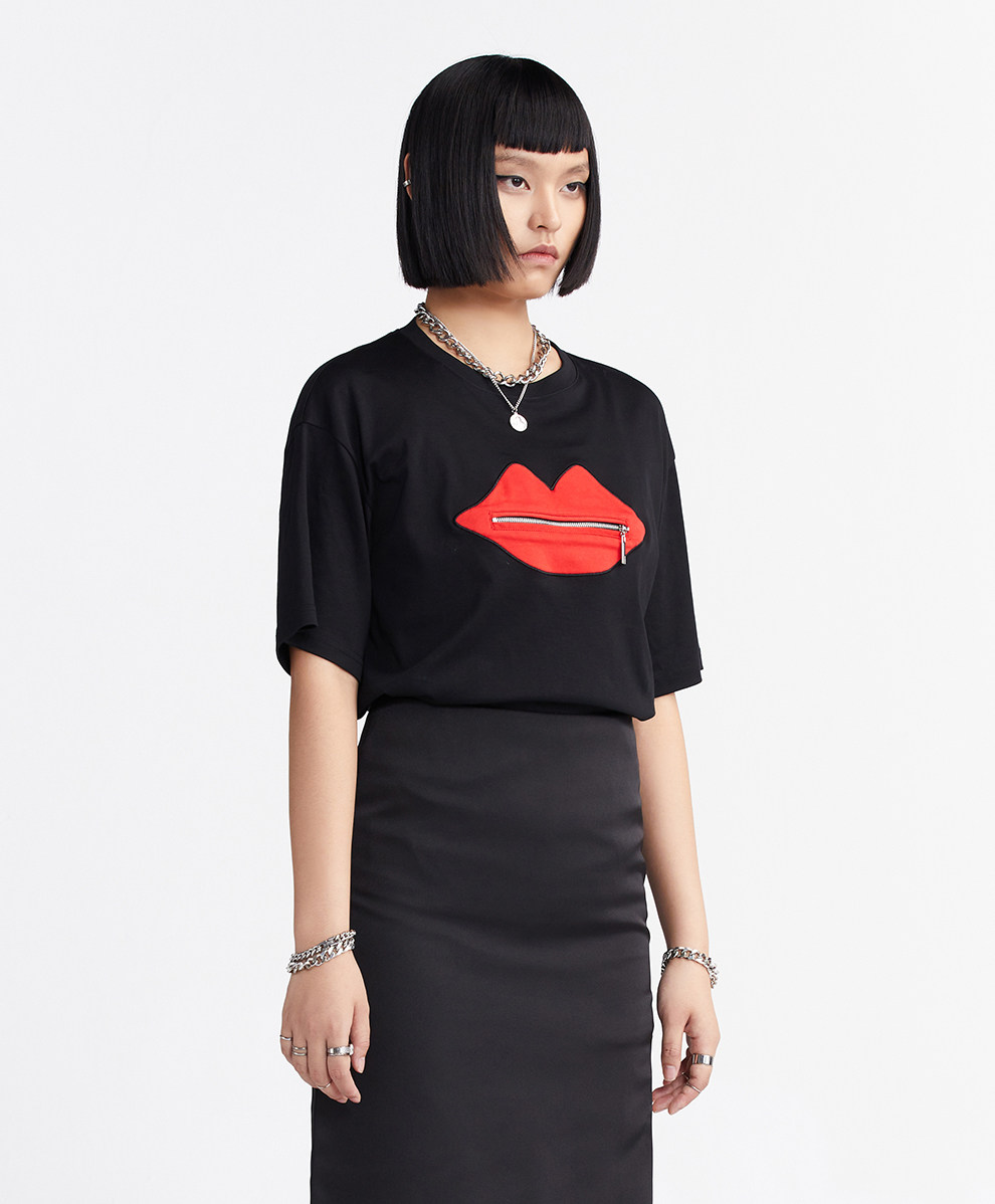 Heardbyodbo甜酷上衣小眾設計感t恤女短袖紅唇拉鍊2022新款夏