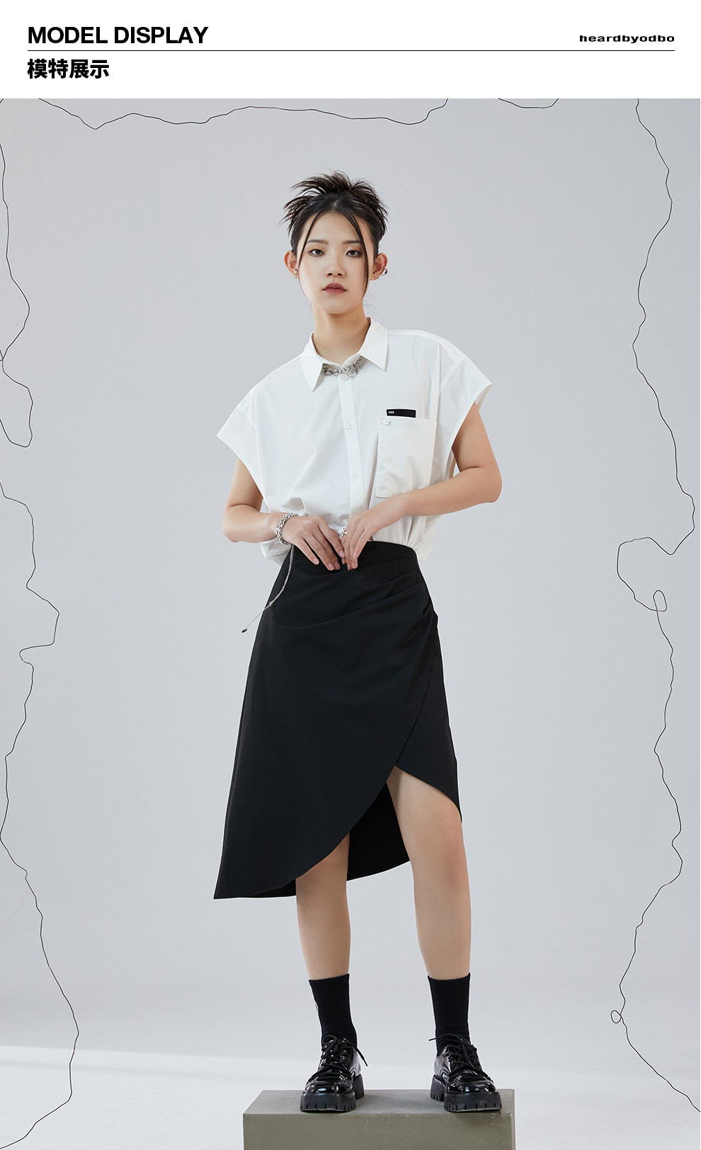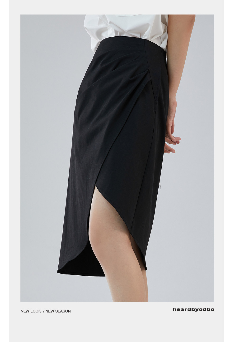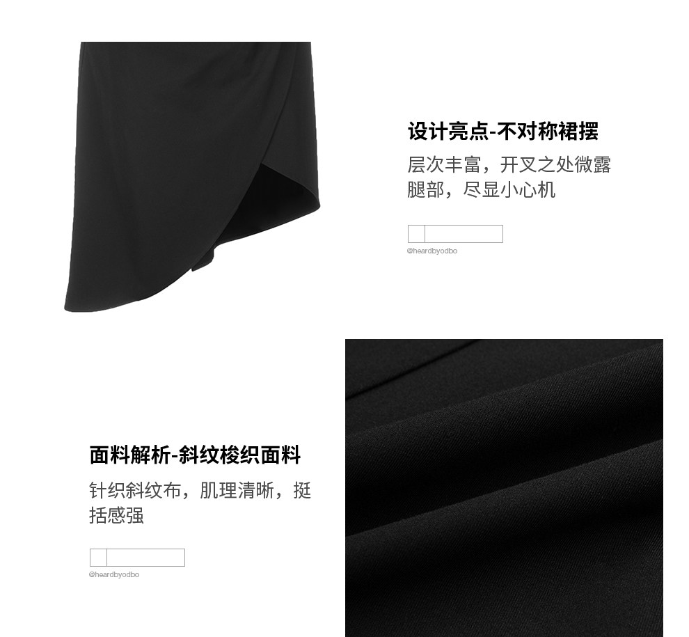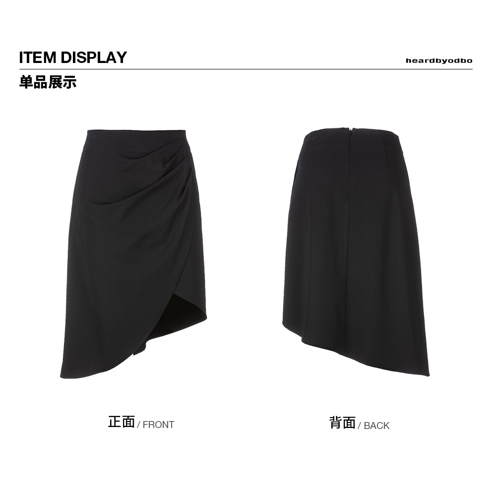Odbo 原創設計感小眾時尚黑色半裙女夏季2022年新款不規則半身裙