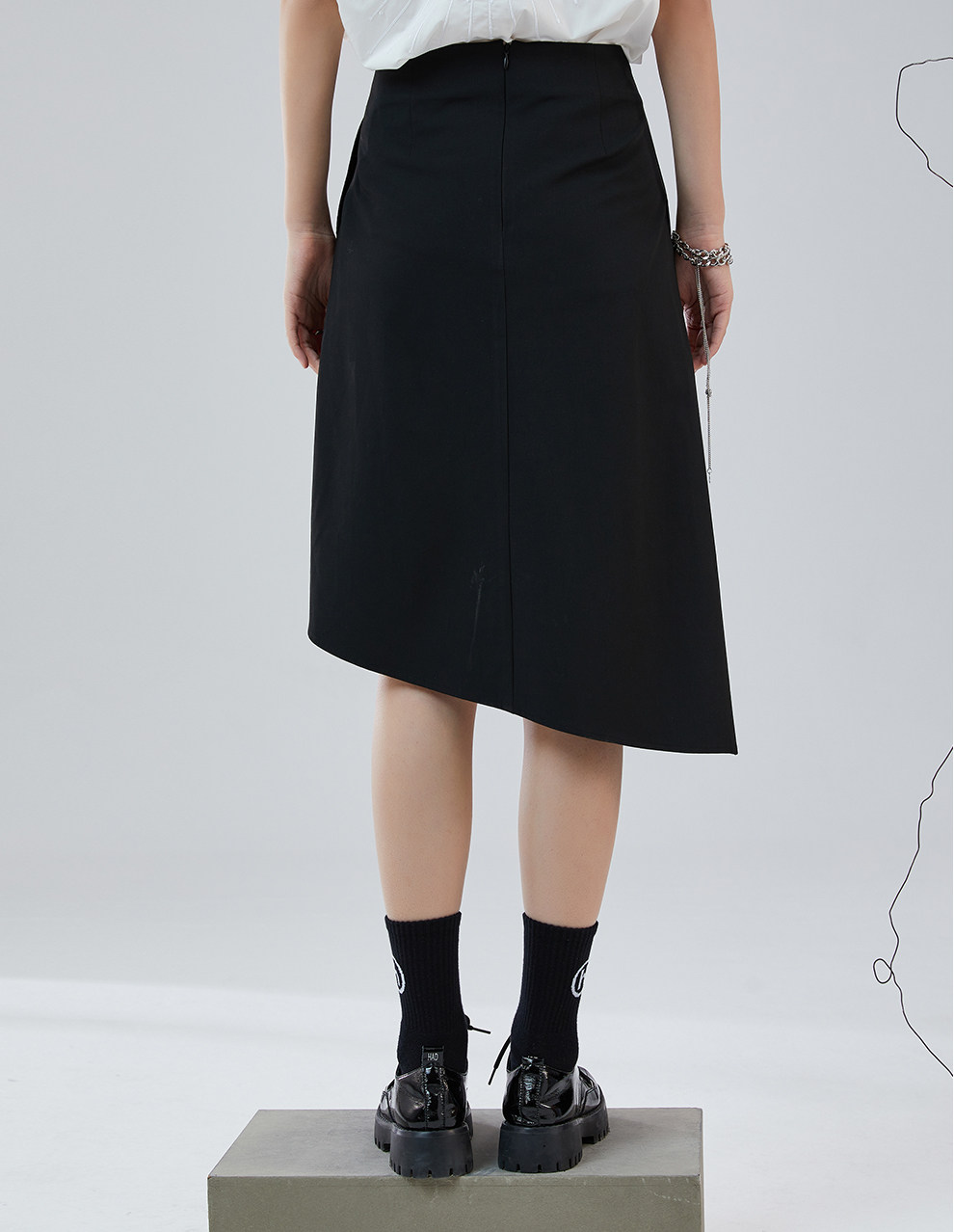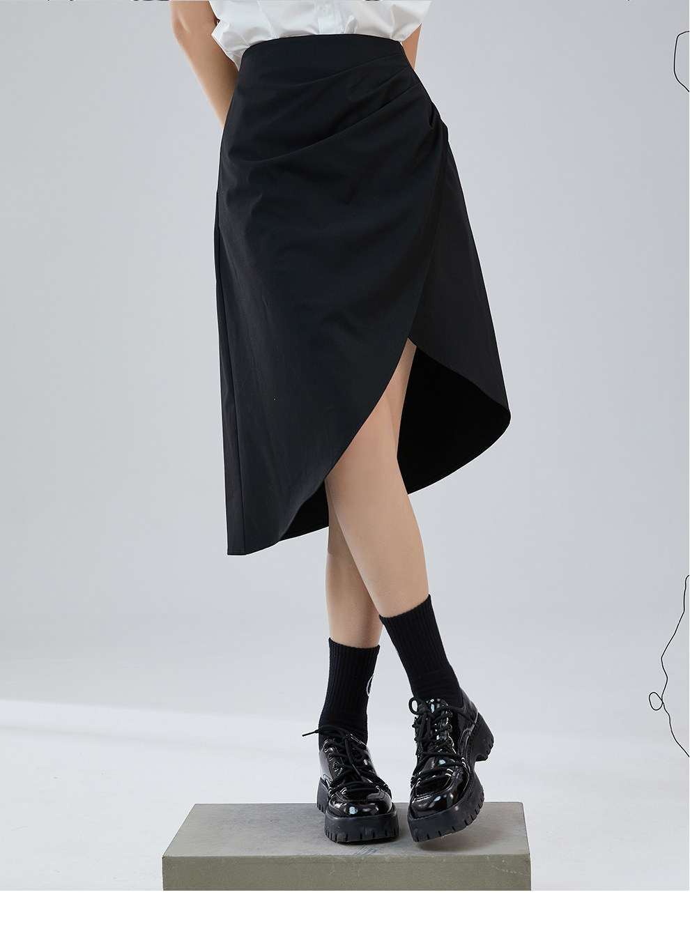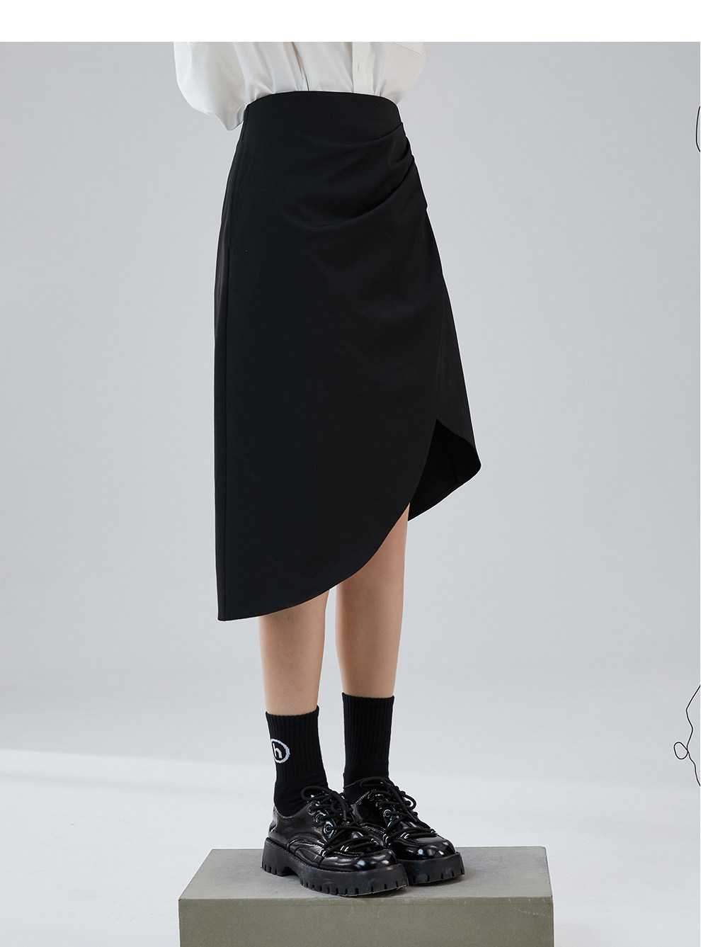 Odbo 原創設計感小眾時尚黑色半裙女夏季2022年新款不規則半身裙