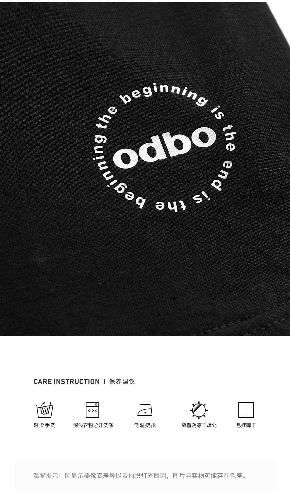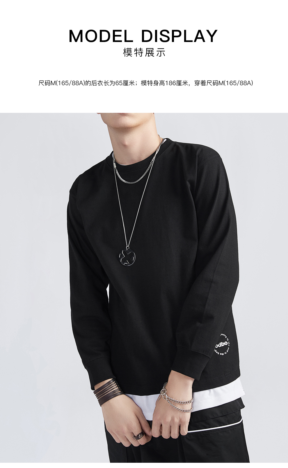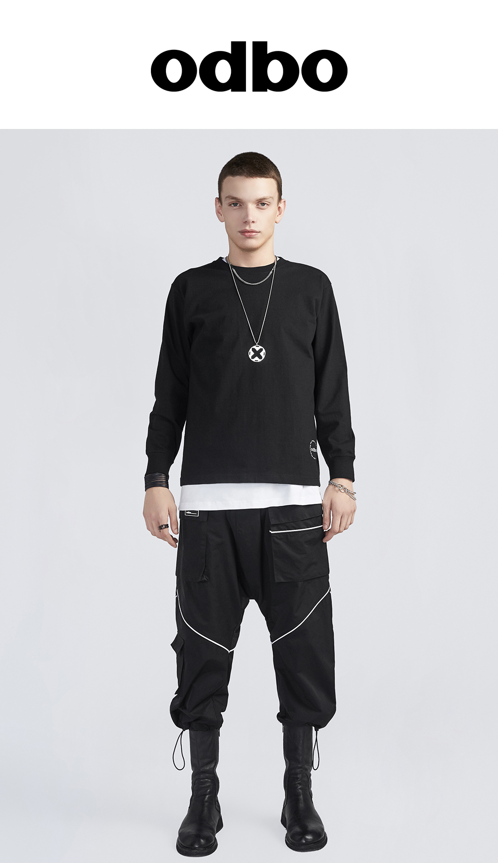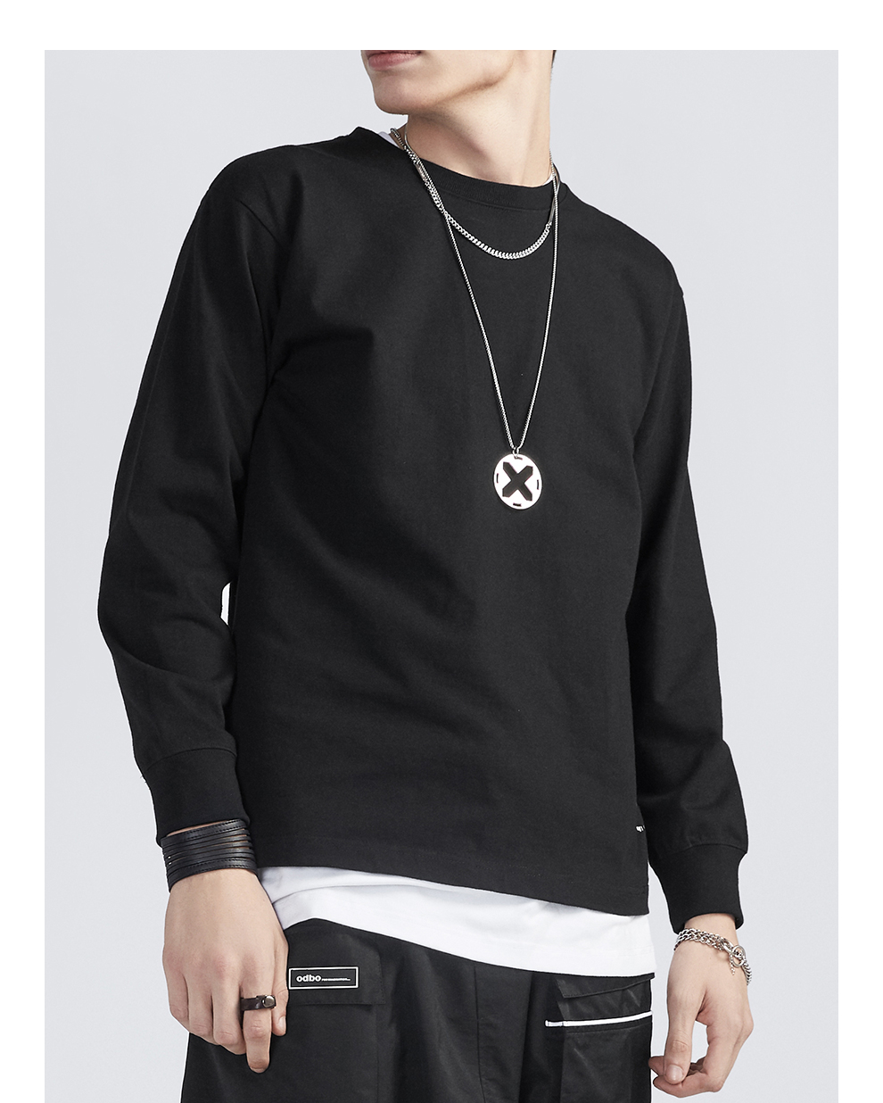 Odbo潮牌純棉長袖t恤男春季2022年新款百搭黑色寬鬆印花圓領上衣