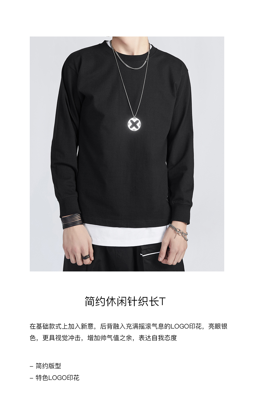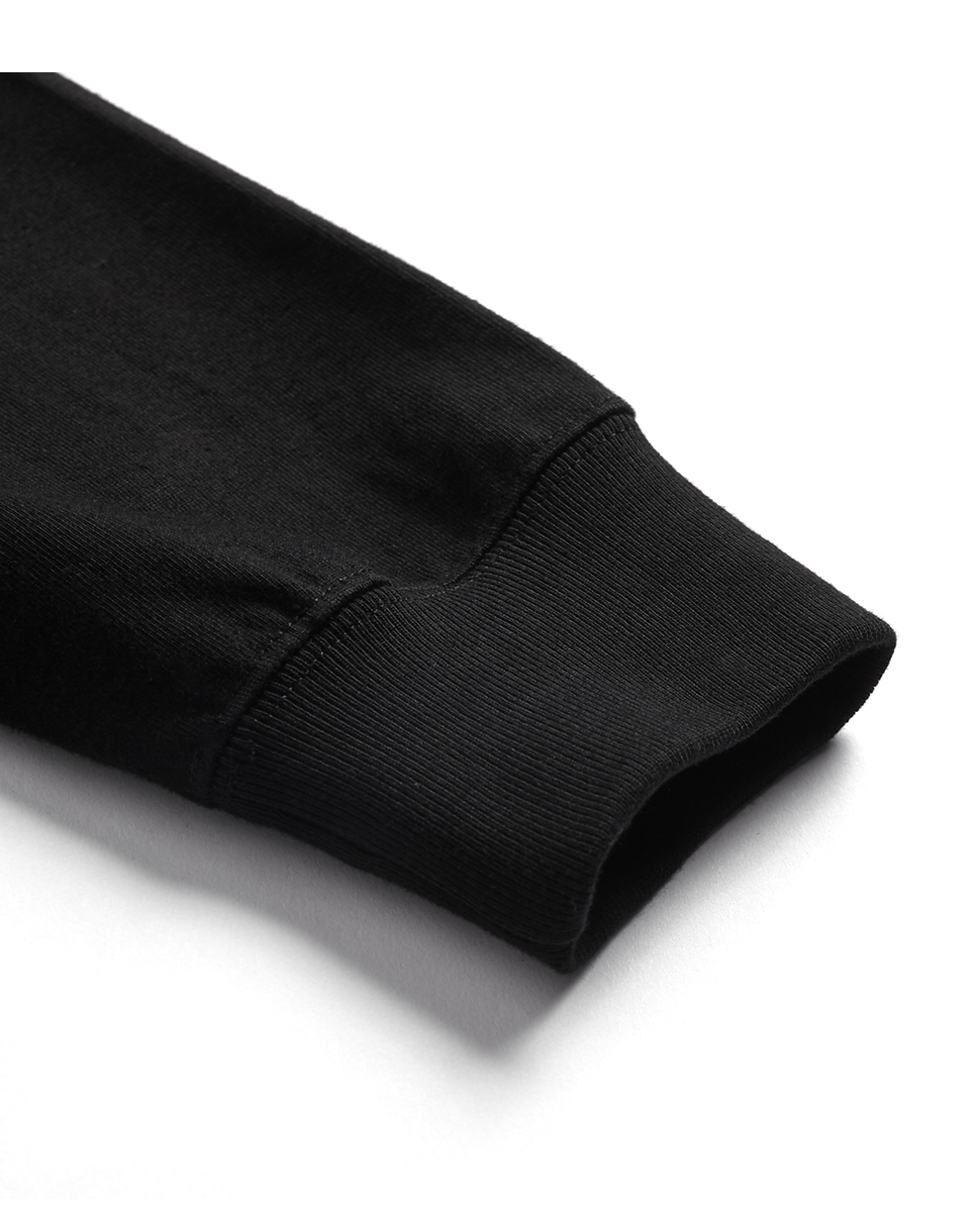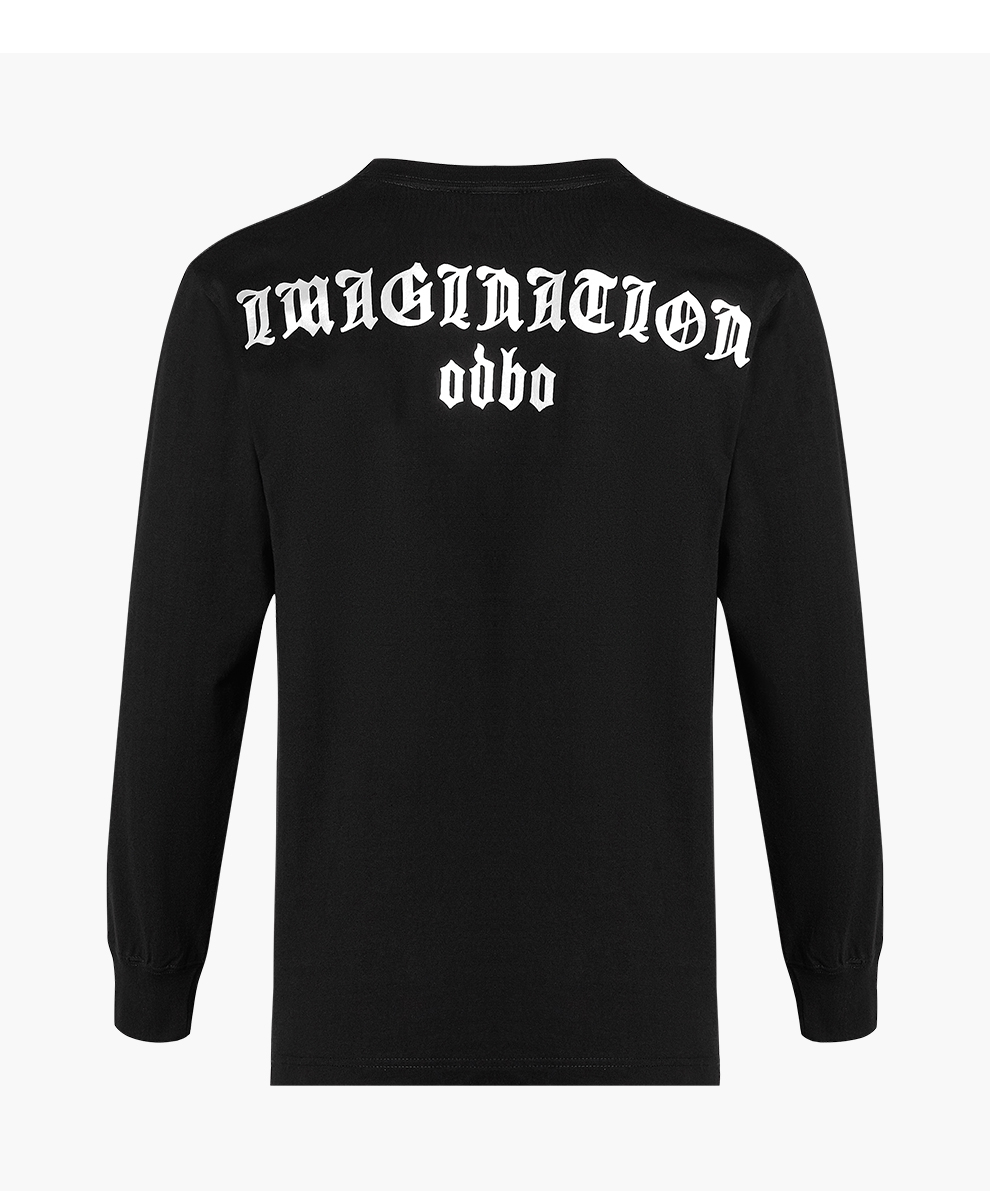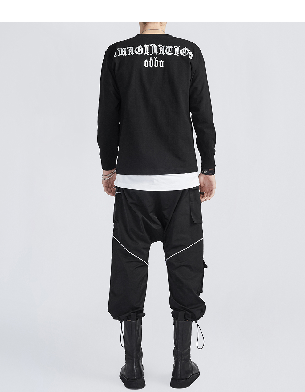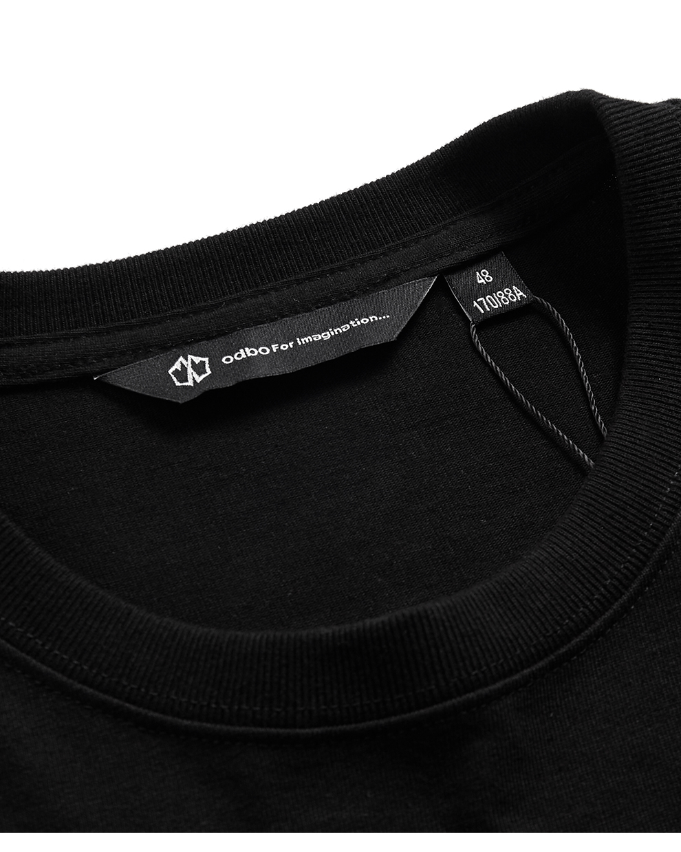 Odbo潮牌純棉長袖t恤男春季2022年新款百搭黑色寬鬆印花圓領上衣