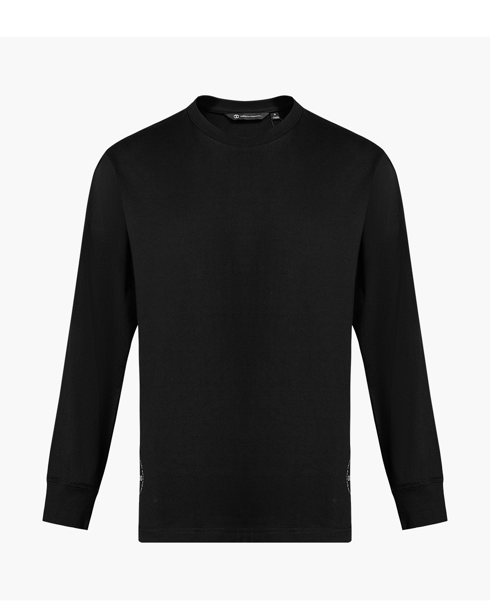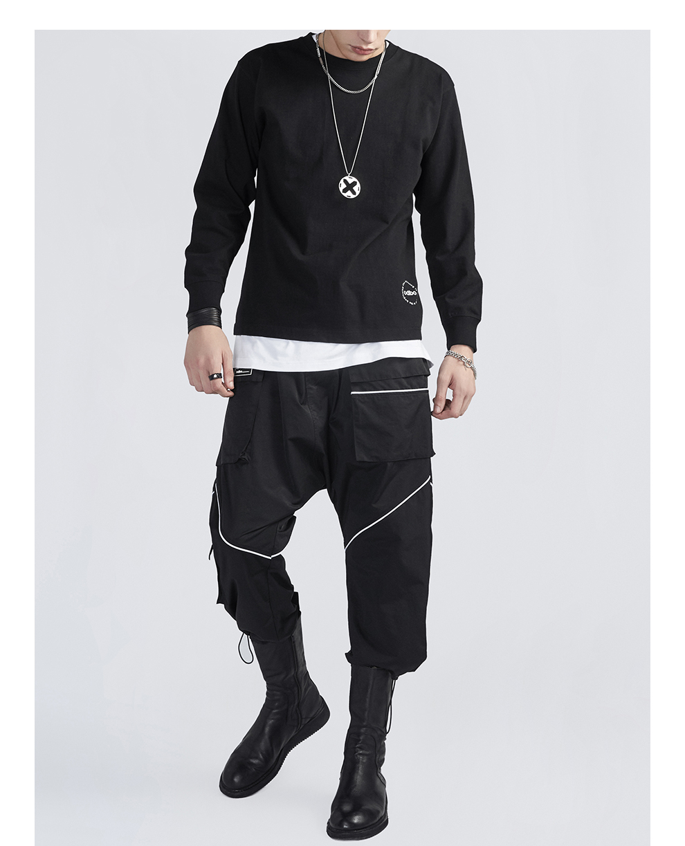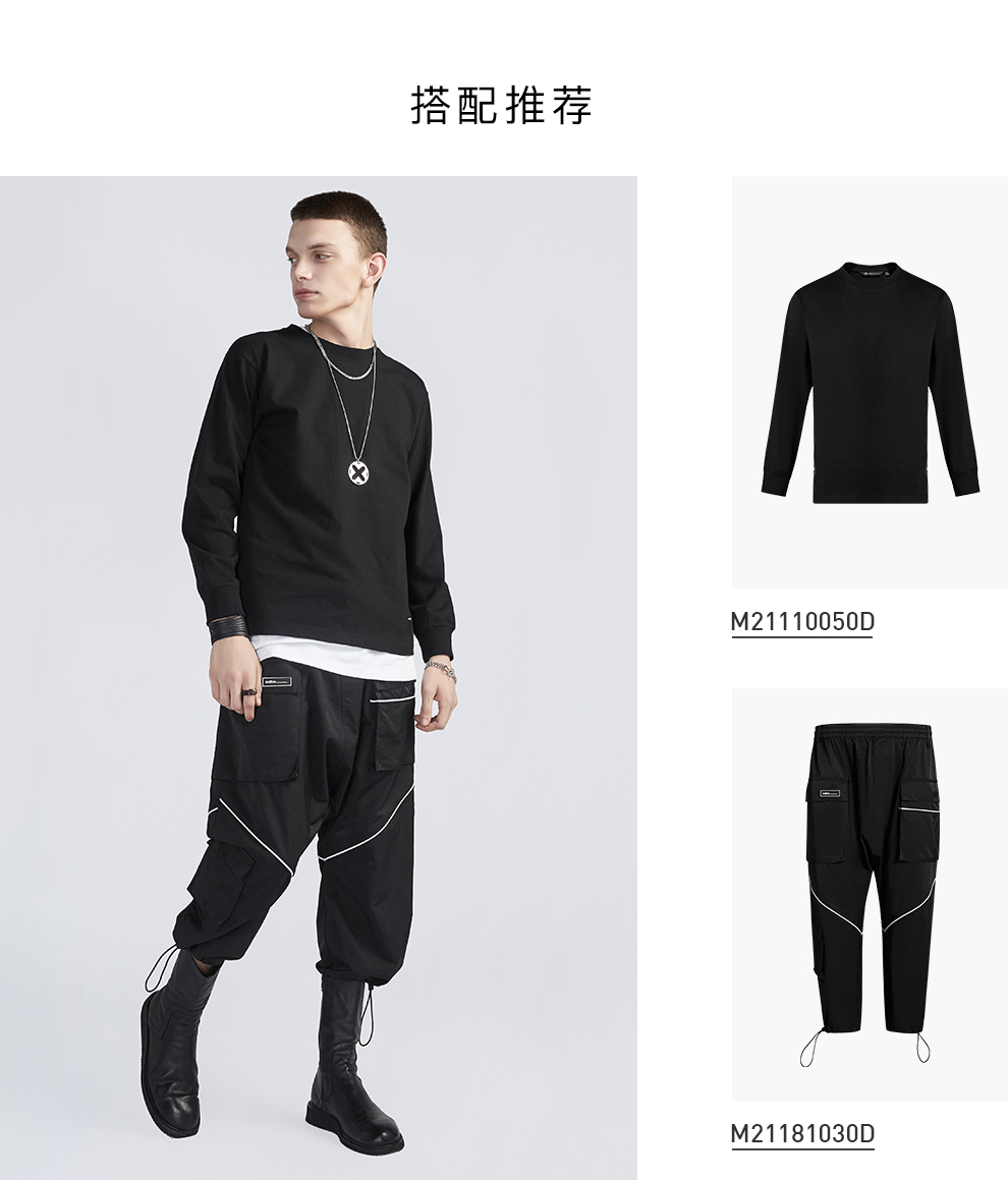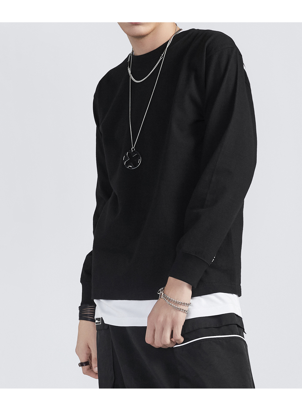 Odbo潮牌純棉長袖t恤男春季2022年新款百搭黑色寬鬆印花圓領上衣