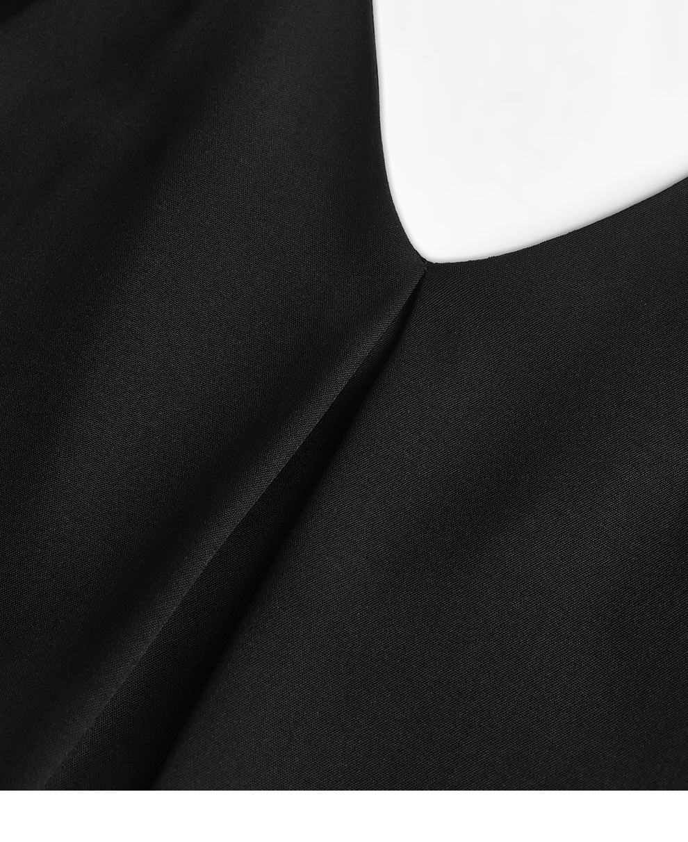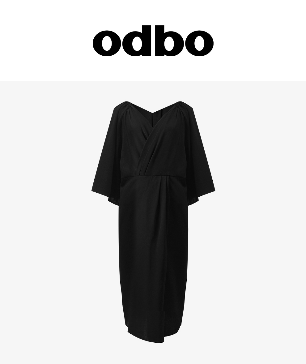 Odbo輕熟風黑色前後兩穿v領連衣裙女夏季2022年新款氣質顯瘦小眾