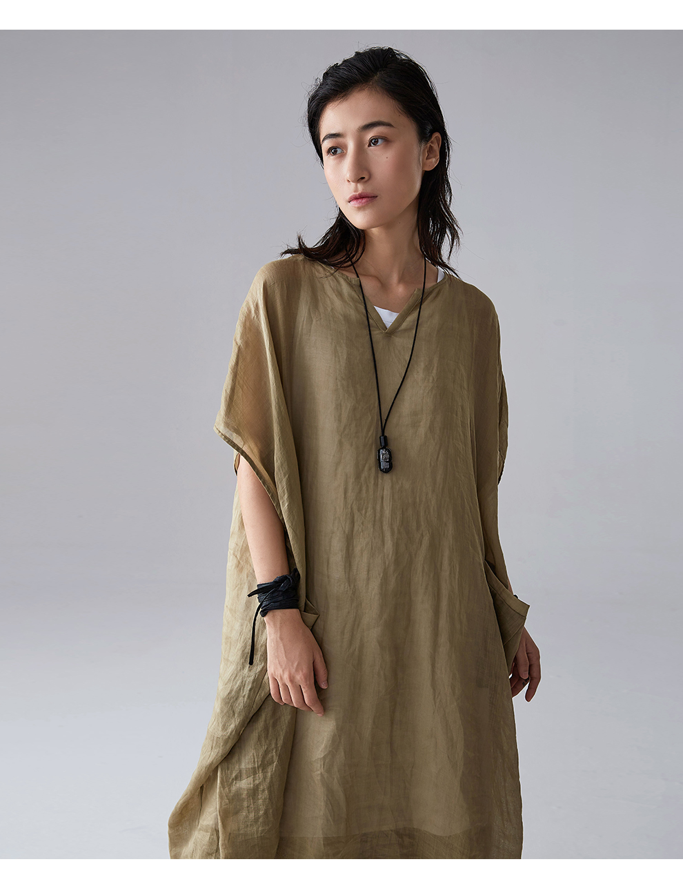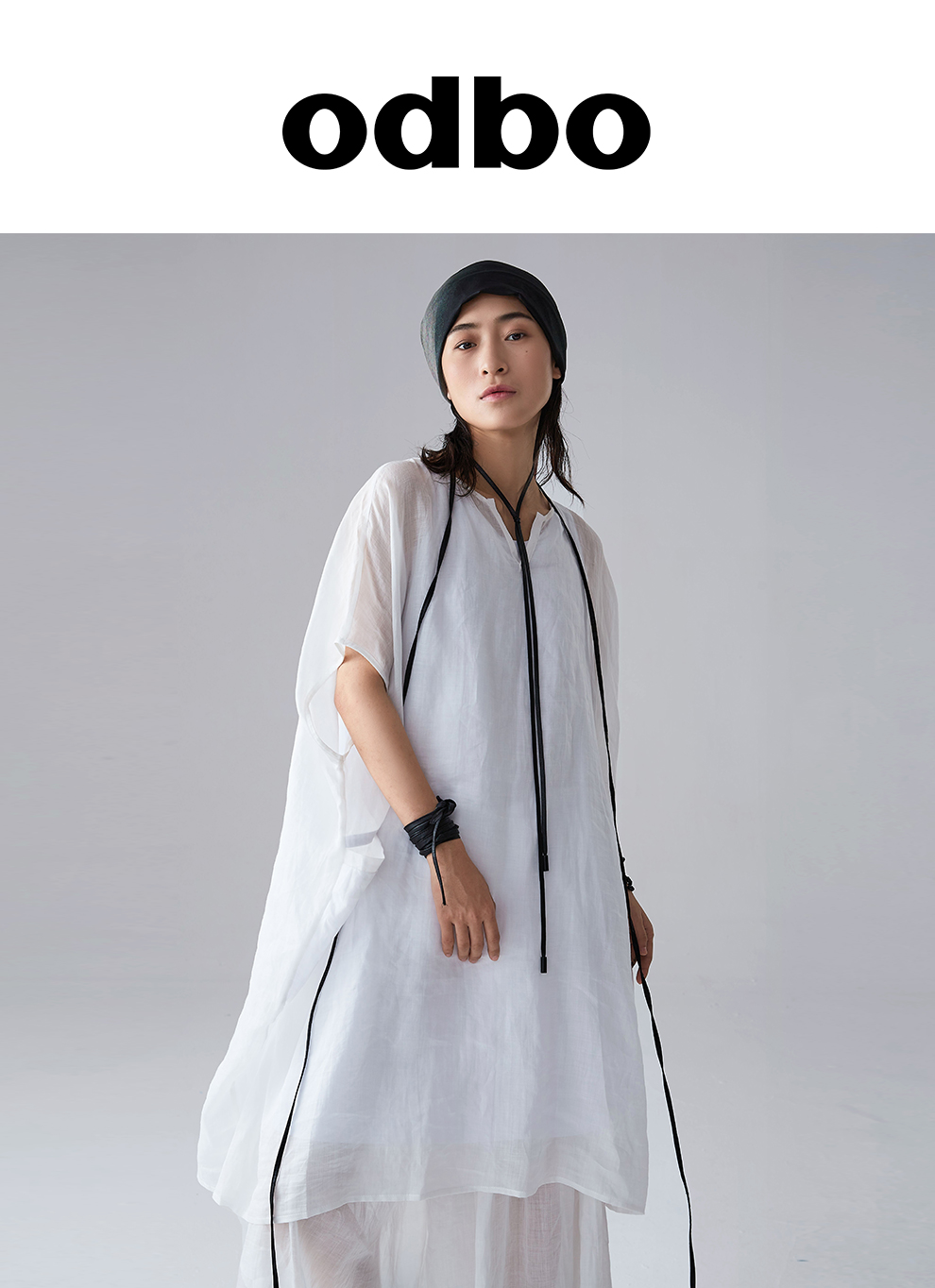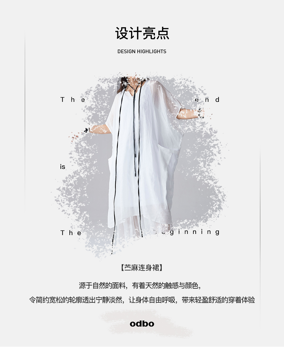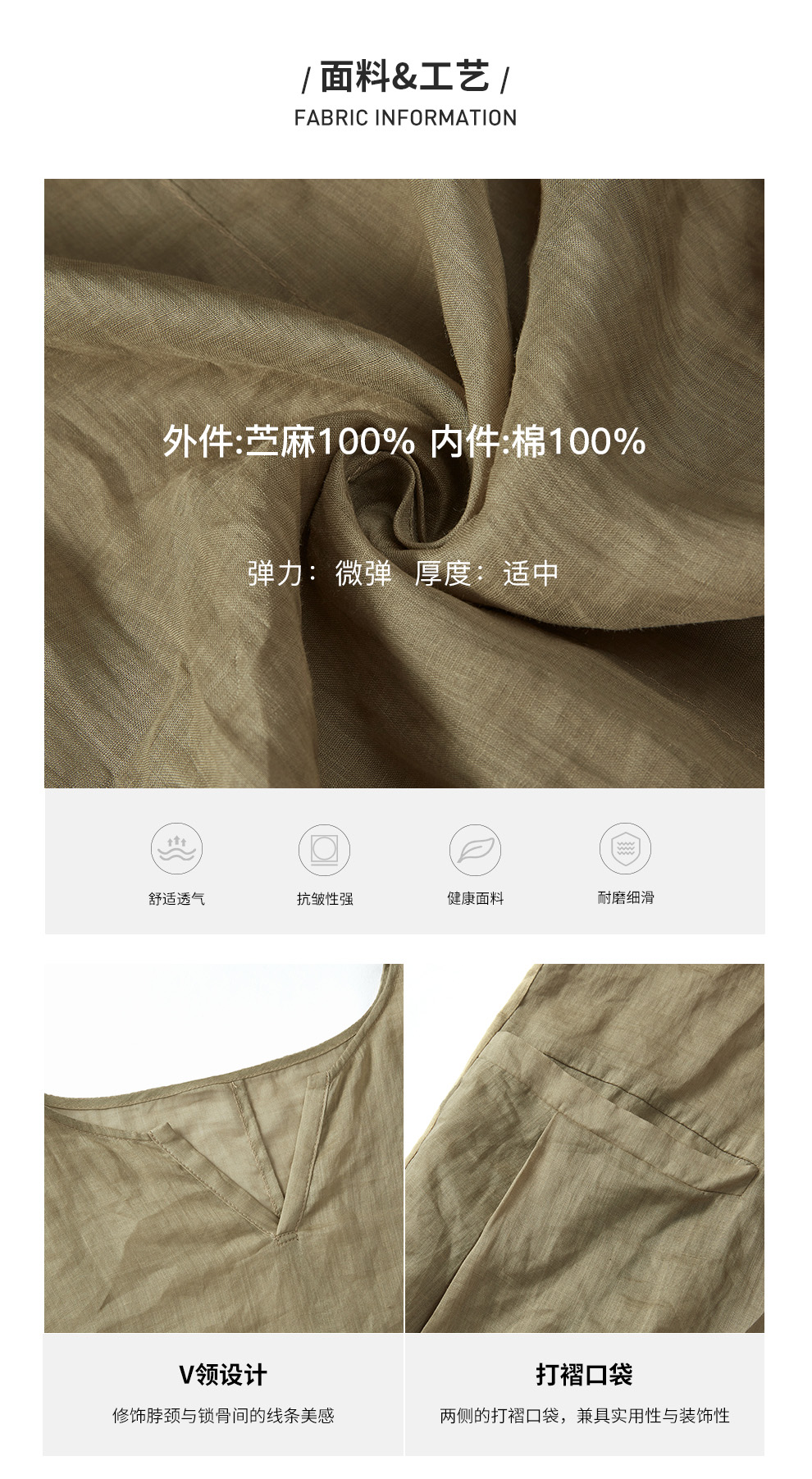 Odbo 休閒氣質苧麻連衣裙女夏季2022年新款薄款舒適透氣寬鬆裙子