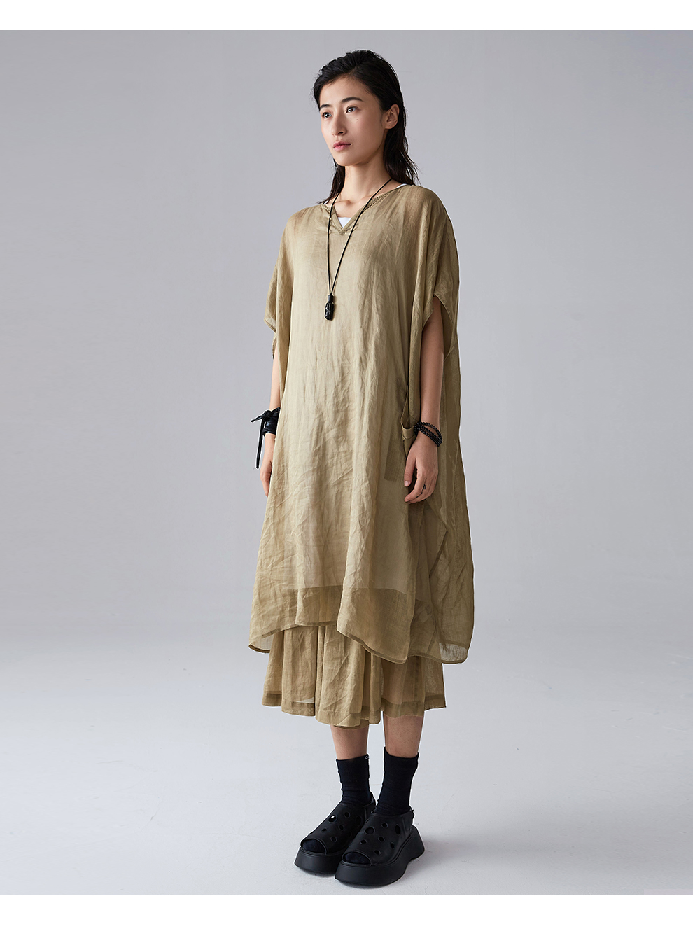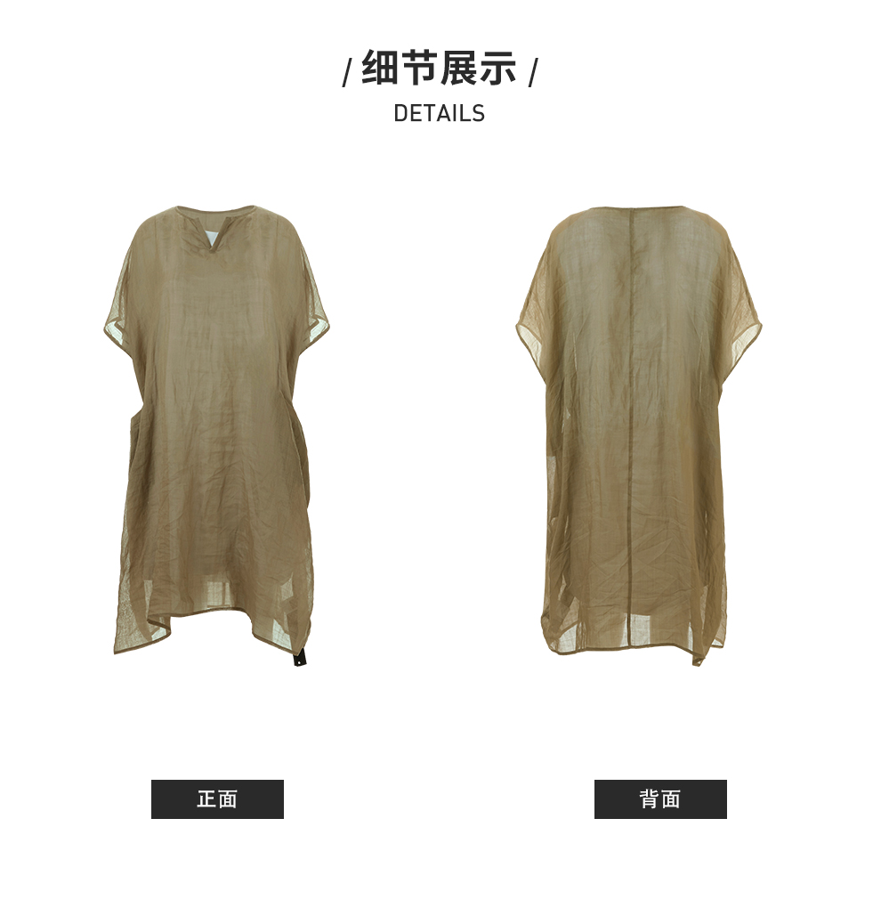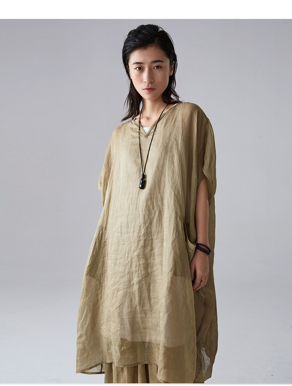 Odbo 休閒氣質苧麻連衣裙女夏季2022年新款薄款舒適透氣寬鬆裙子