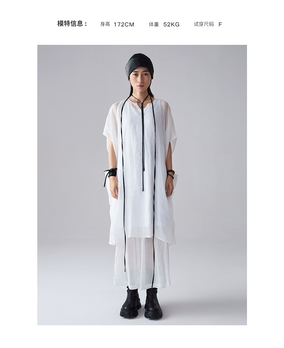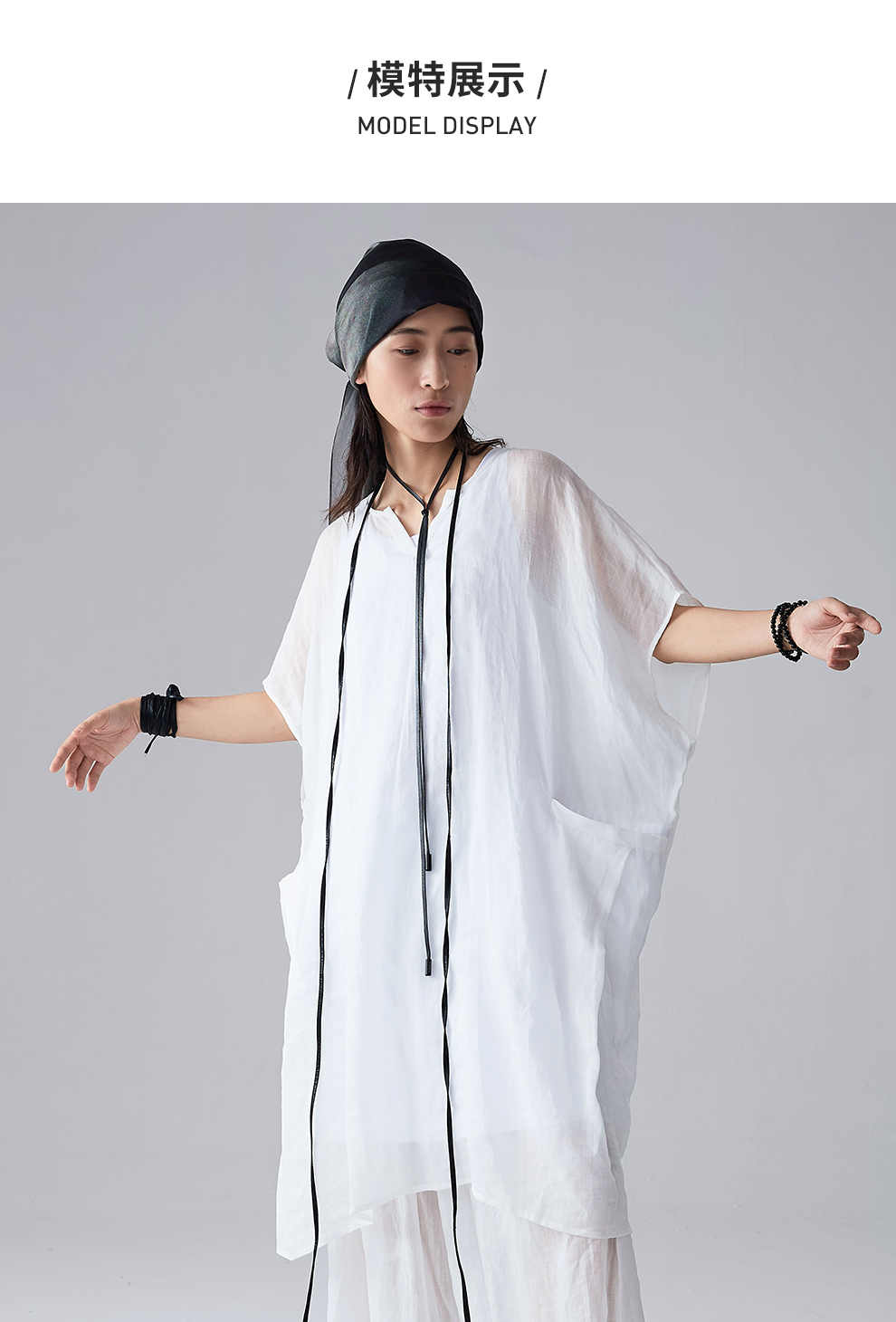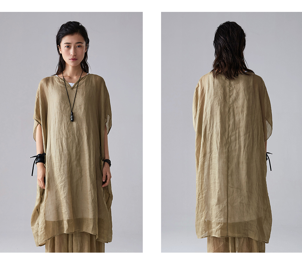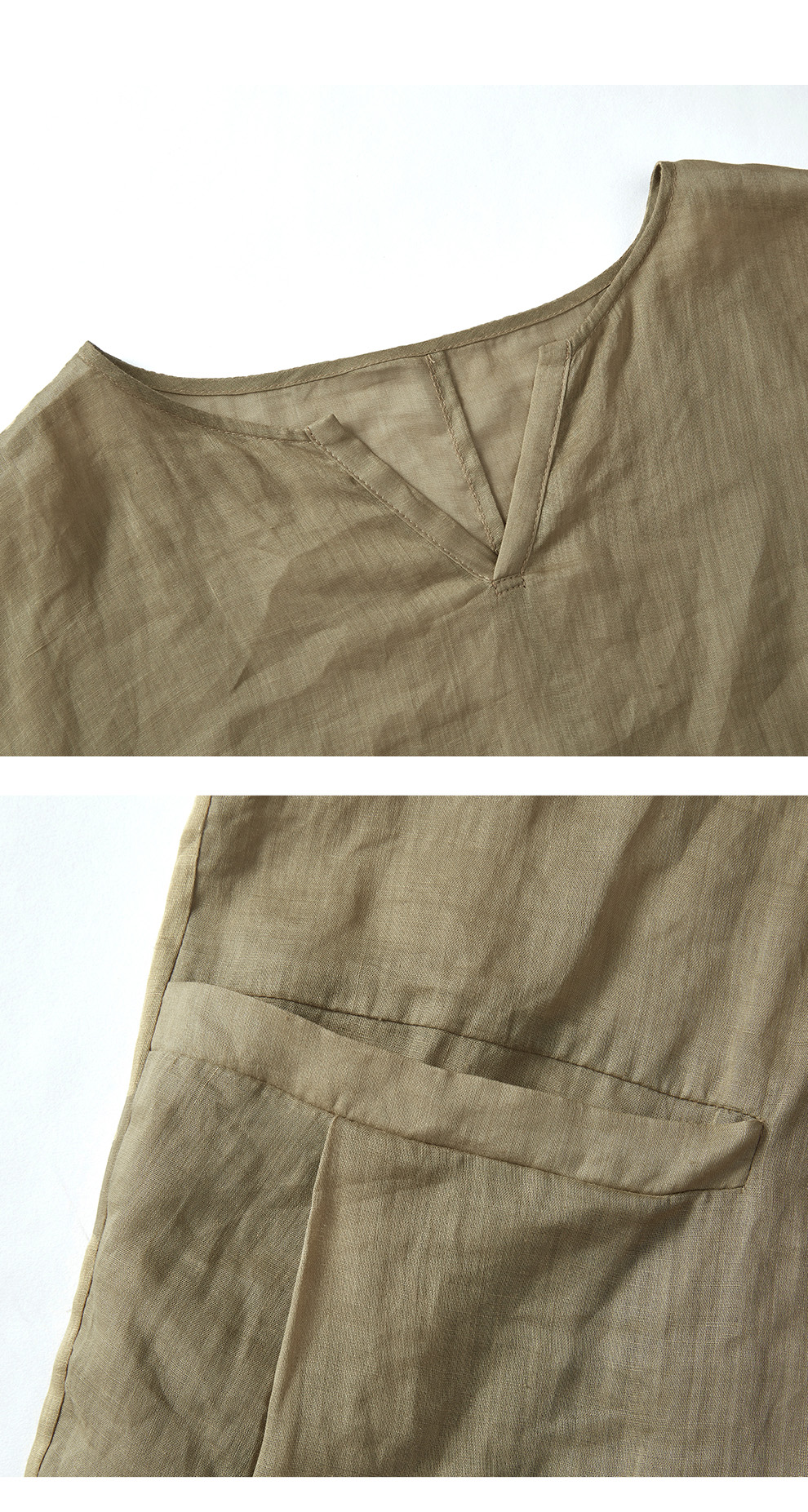 Odbo 休閒氣質苧麻連衣裙女夏季2022年新款薄款舒適透氣寬鬆裙子