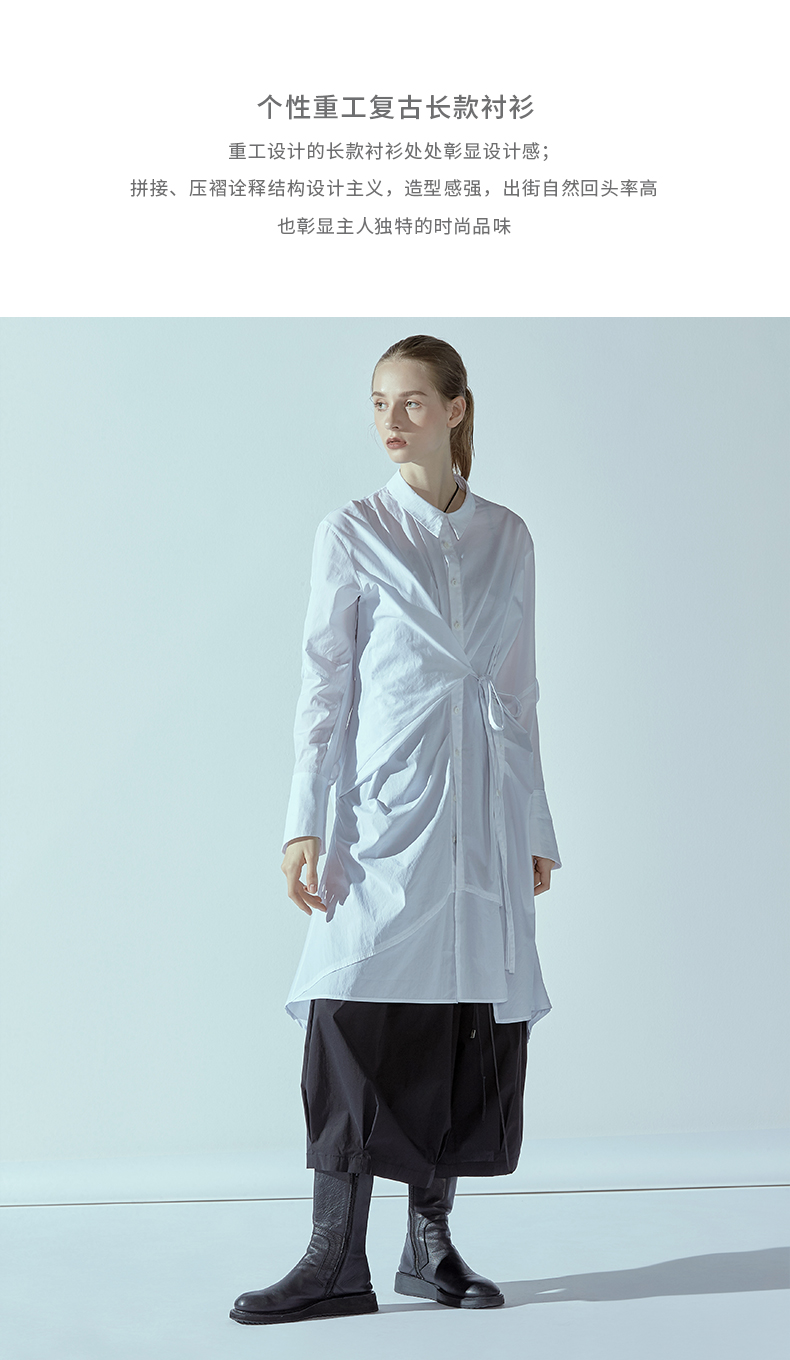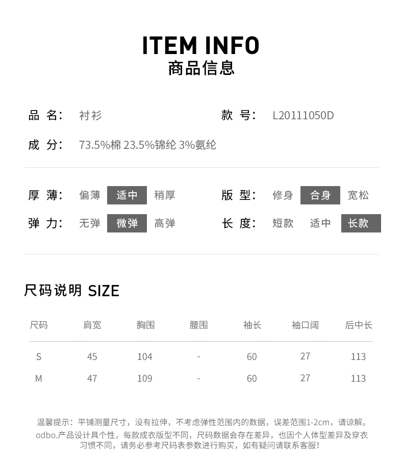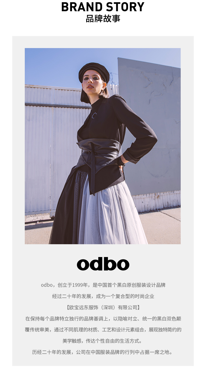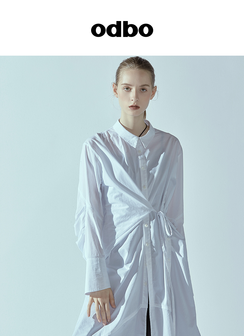 Odbo/歐迪比歐專櫃同款設計師品牌女長袖襯衫連衣裙
