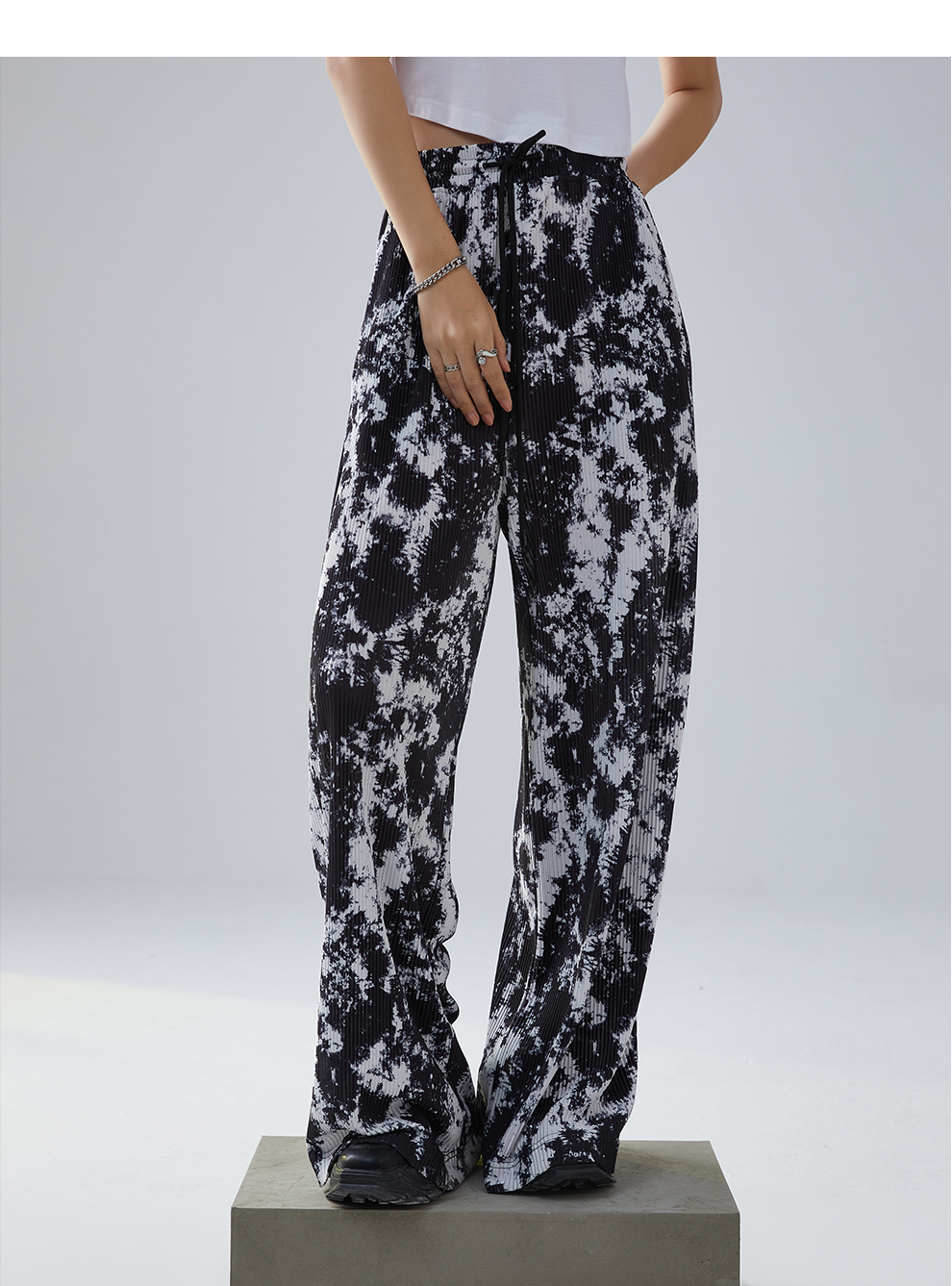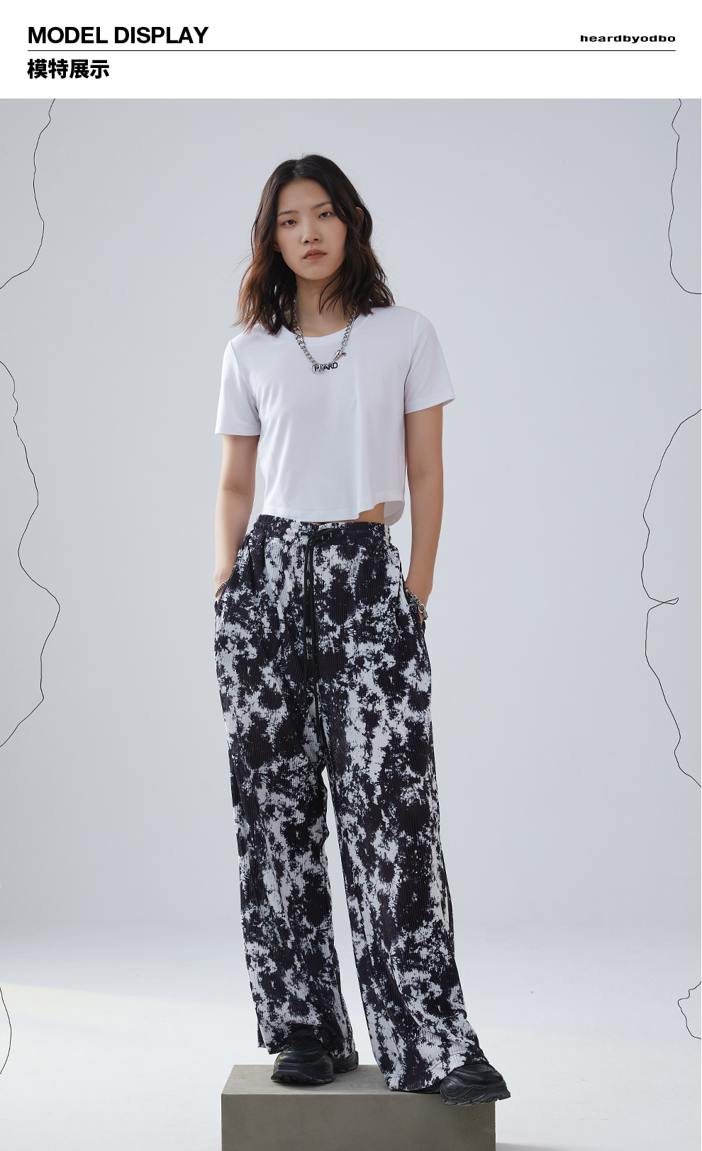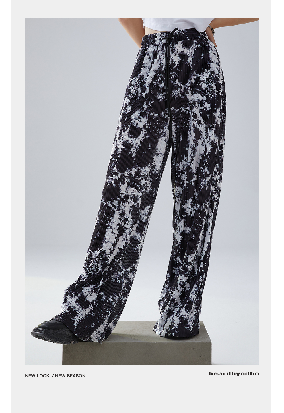Heardbyodbo春裝2022年新款女時尚印花休閒褲女高腰垂感百搭長褲