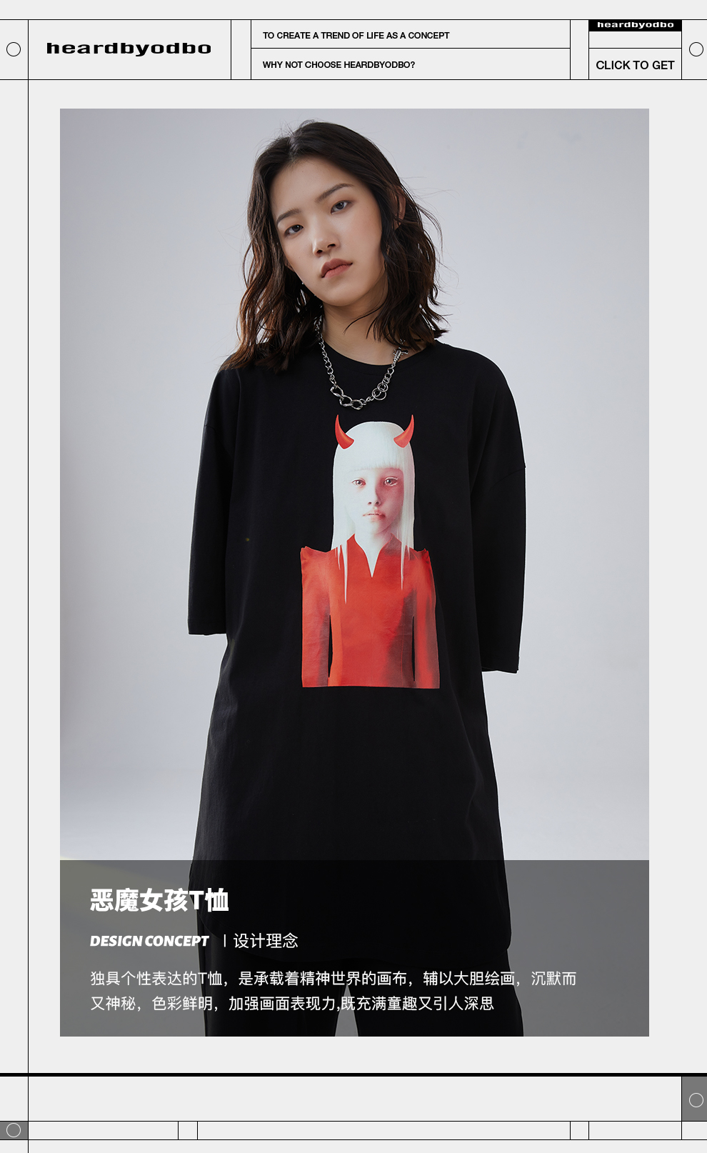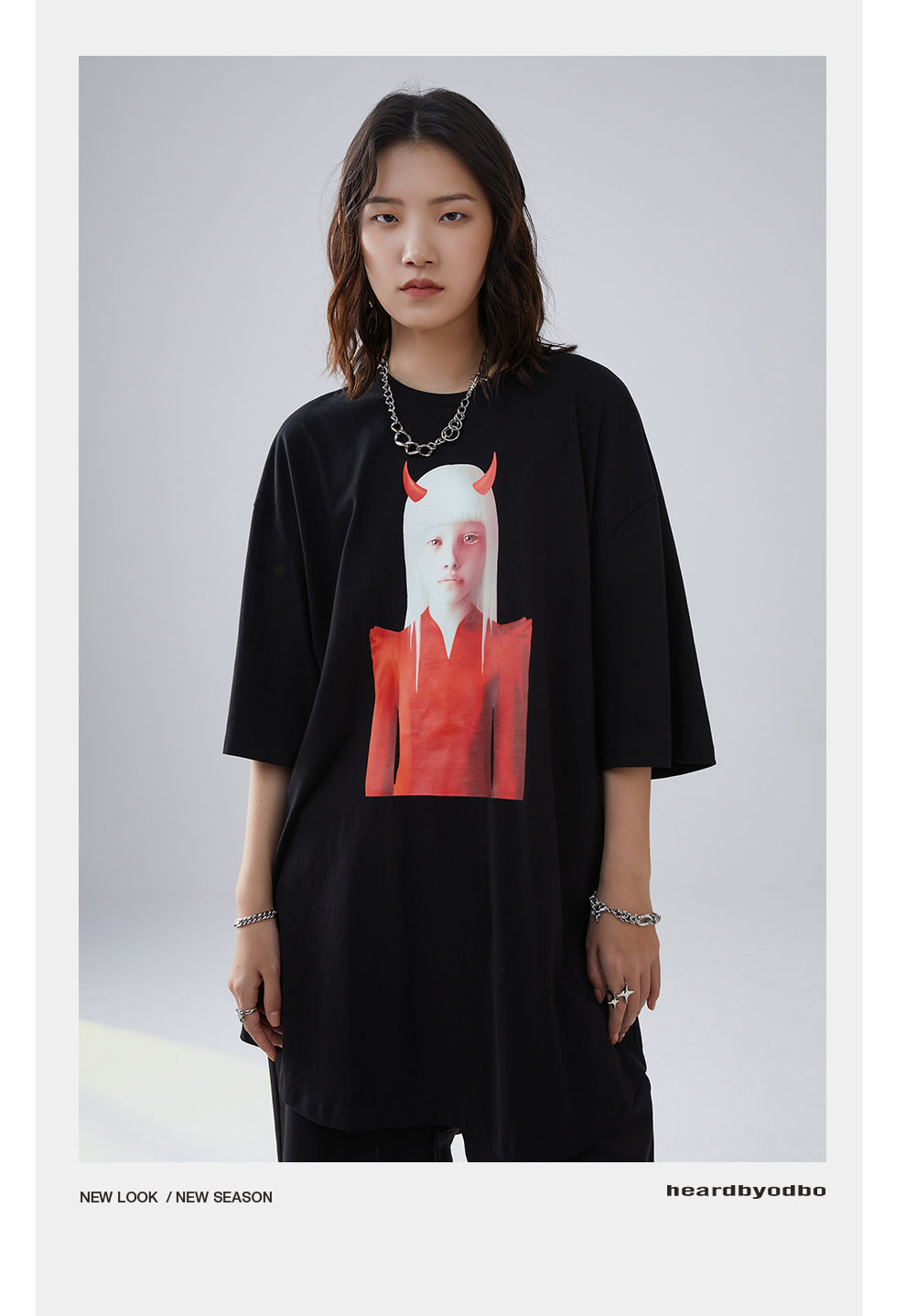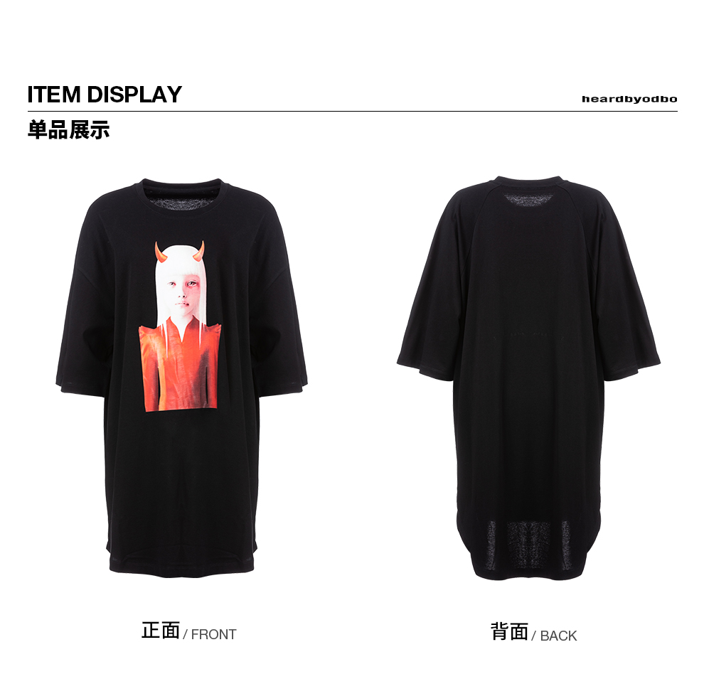 Heardbyodbo2022年夏季新款潮牌五分袖印花T恤女寬鬆中長休閒上衣