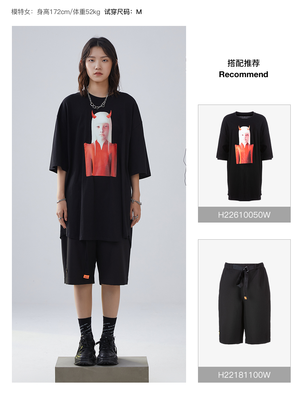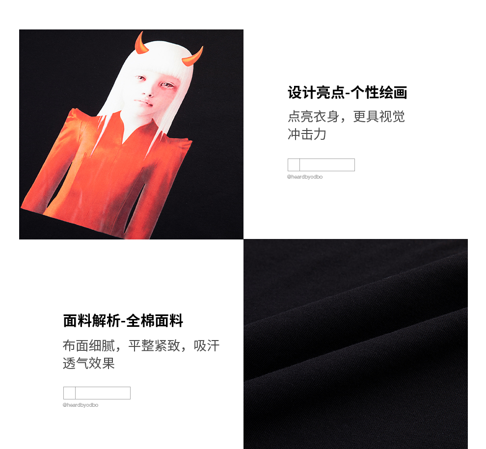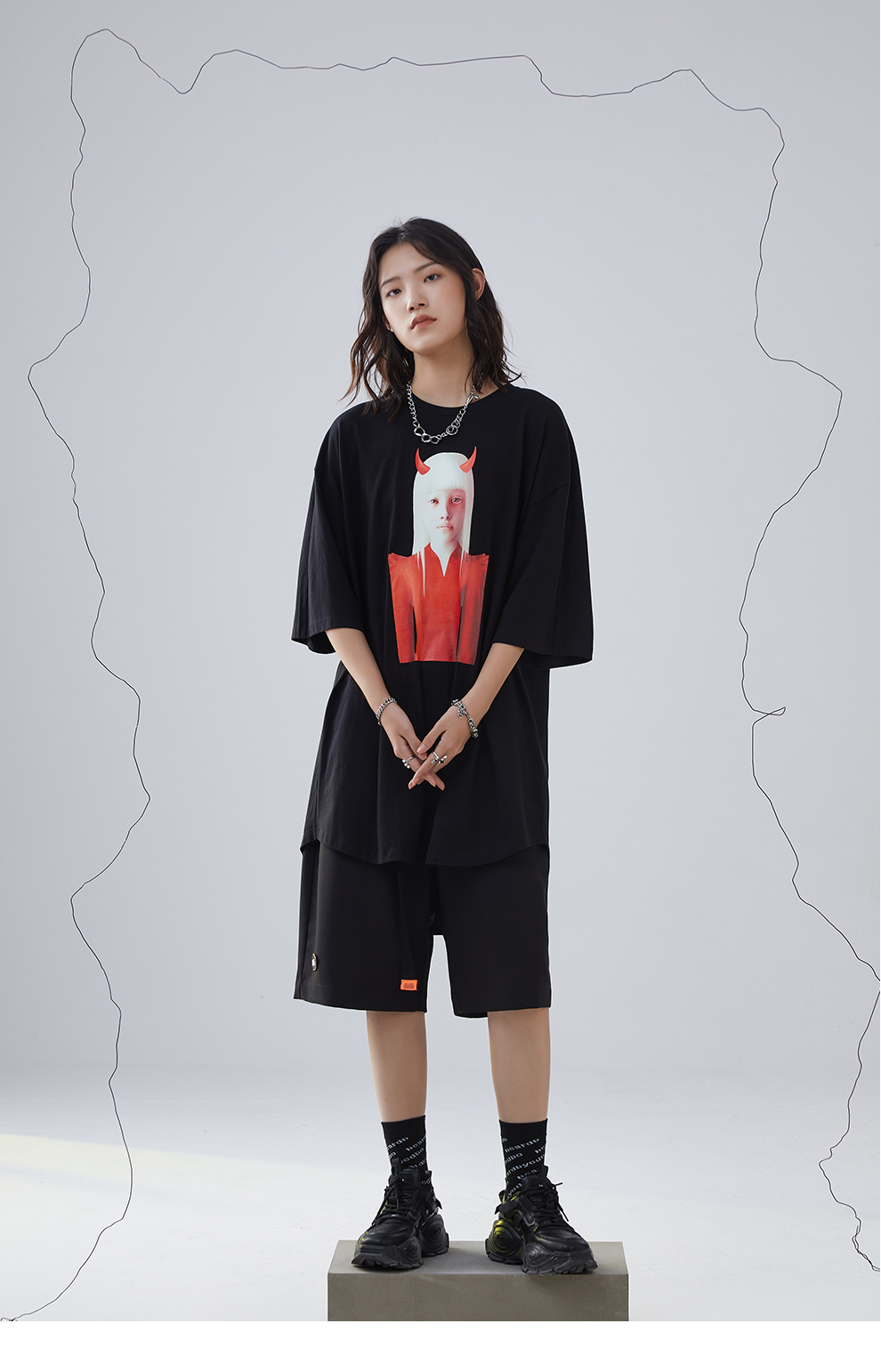 Heardbyodbo2022年夏季新款潮牌五分袖印花T恤女寬鬆中長休閒上衣